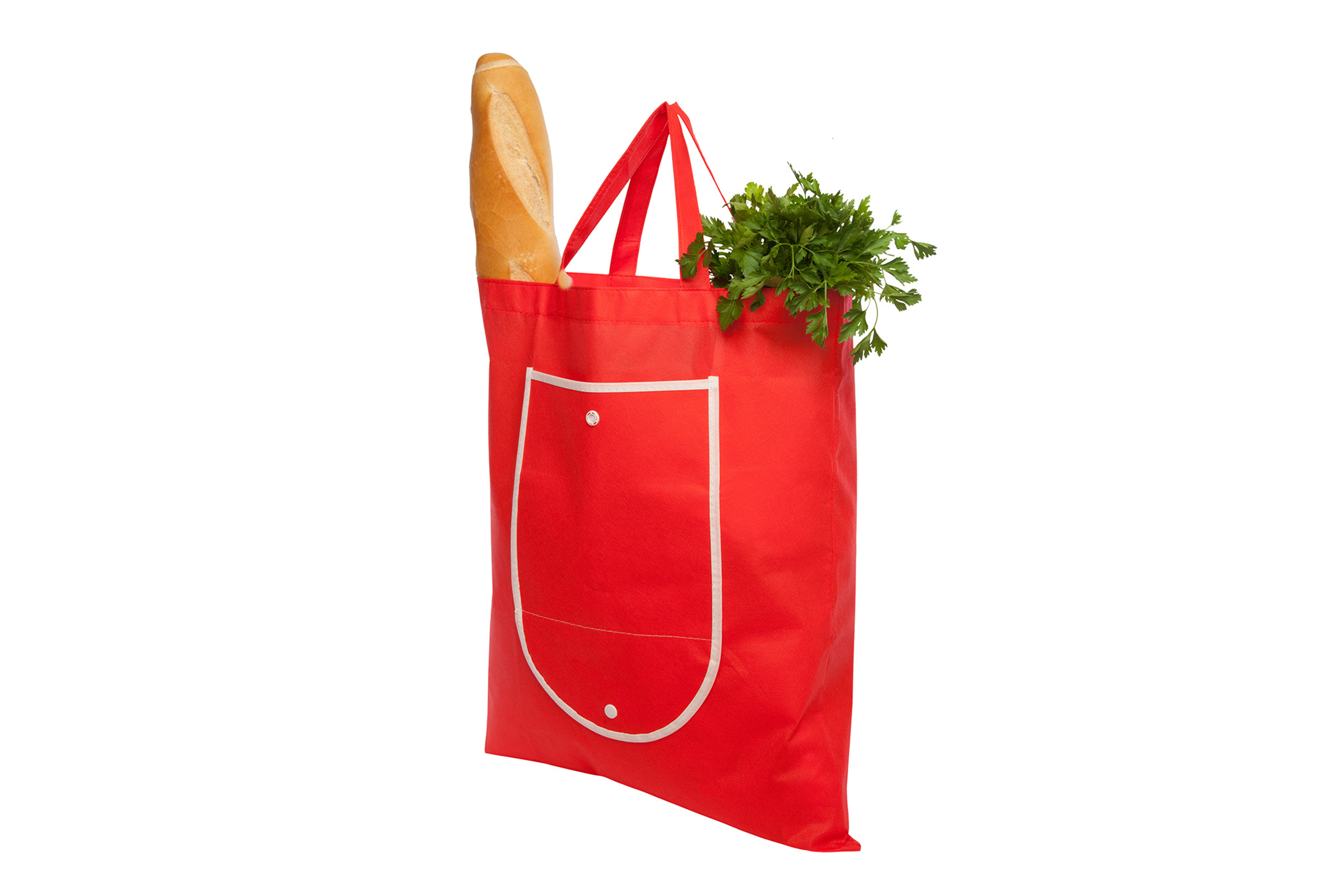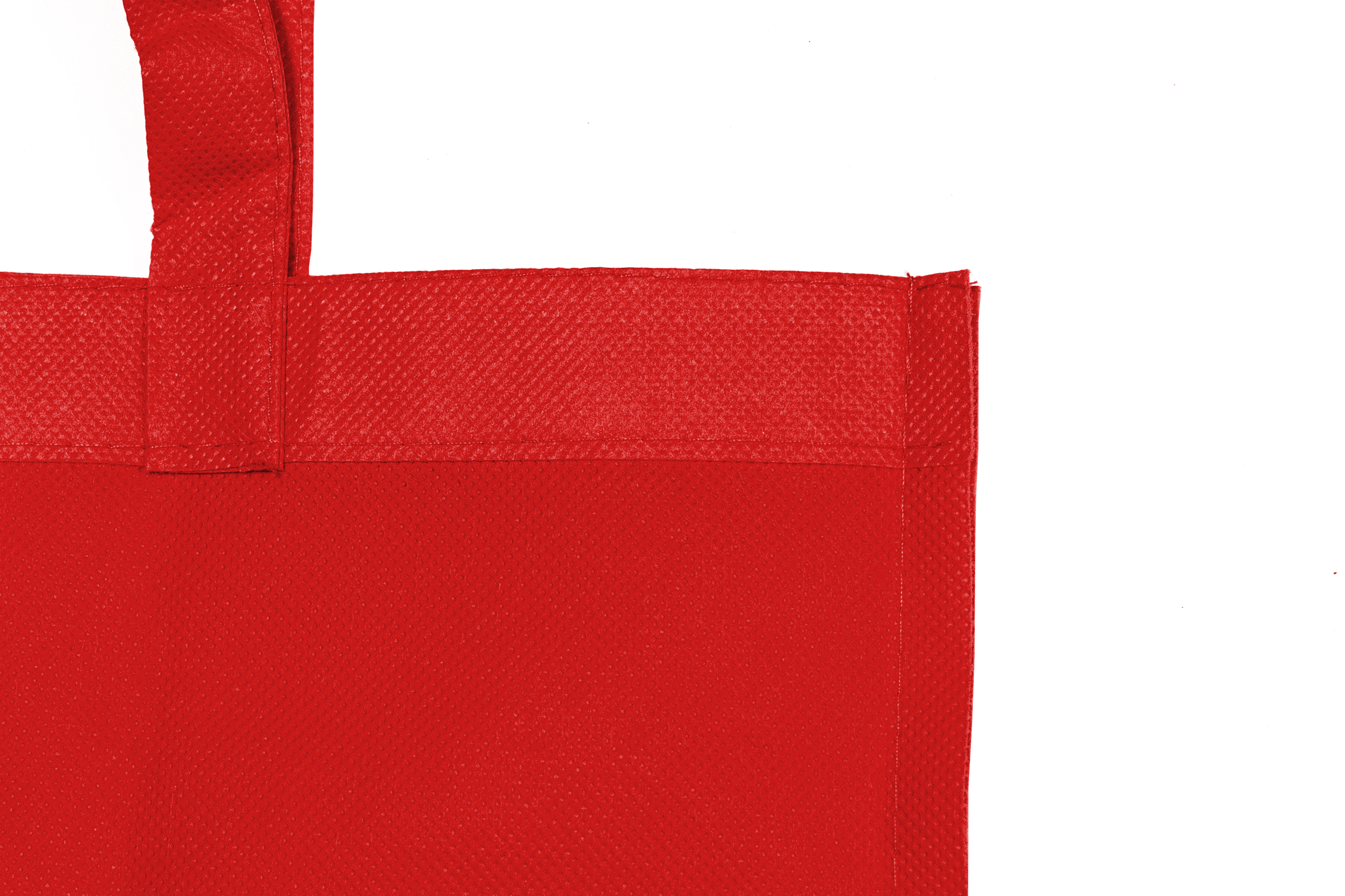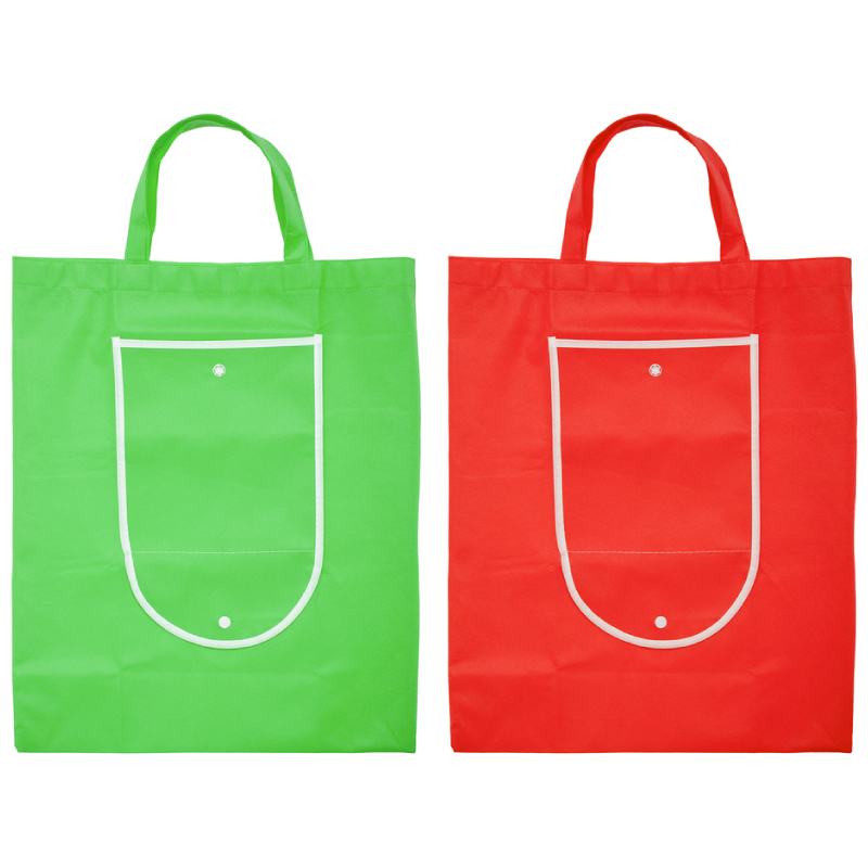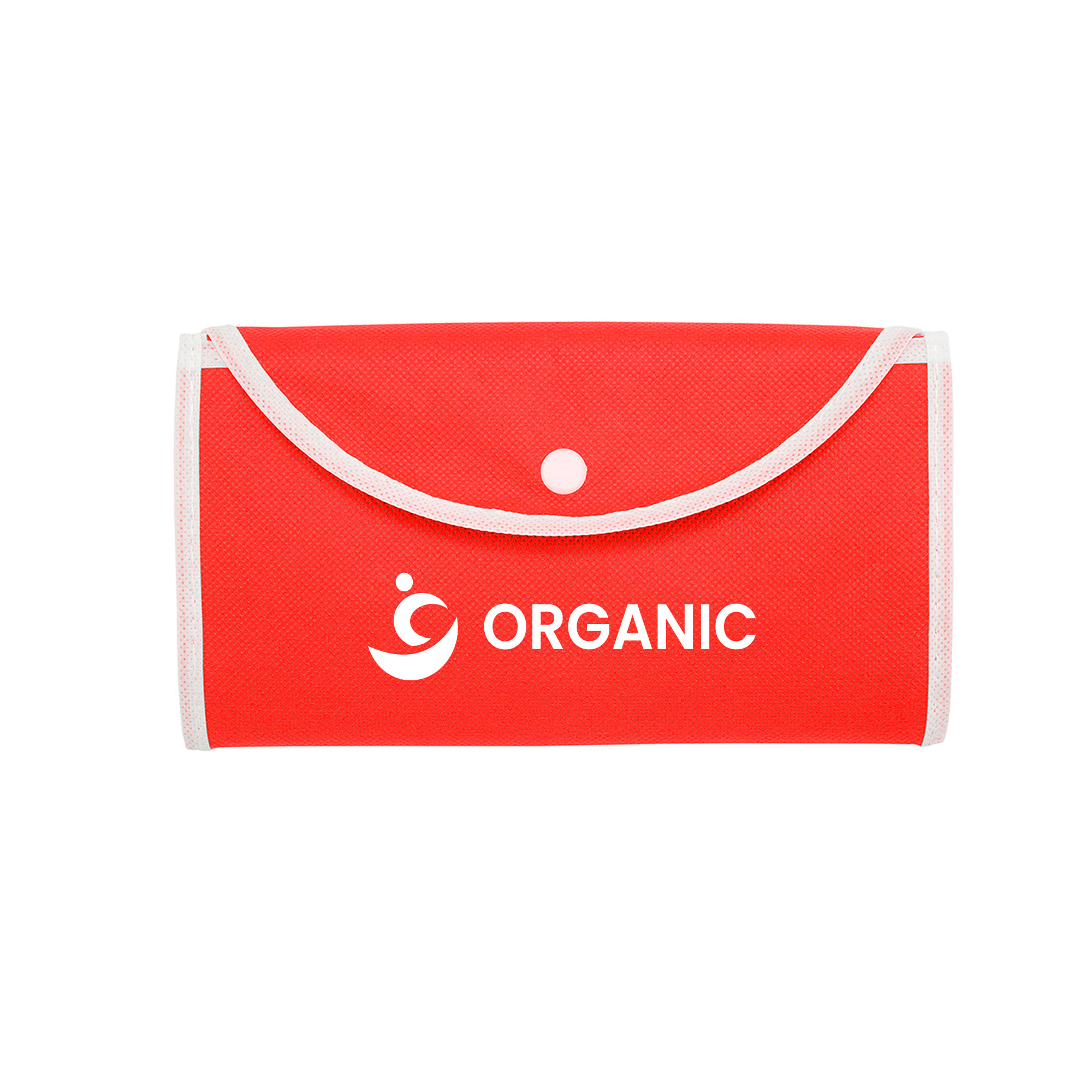 40 x 47.5 cm (abierta) / 20,5 x 12 cm (cerrada)-Non-woven. Bolsa que posee un bolsillo frontal con vivos blancos alrededor y un cierre de botón.