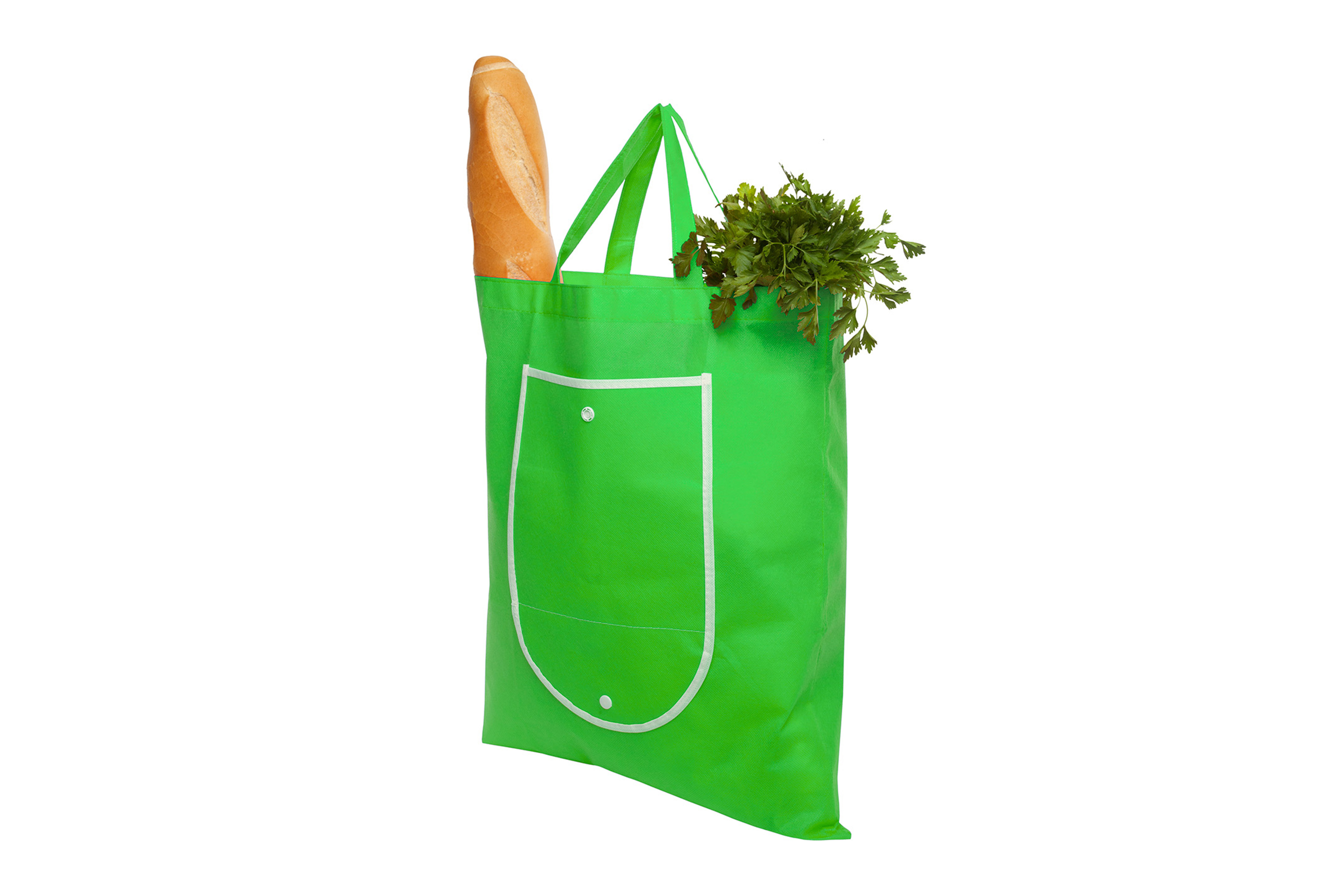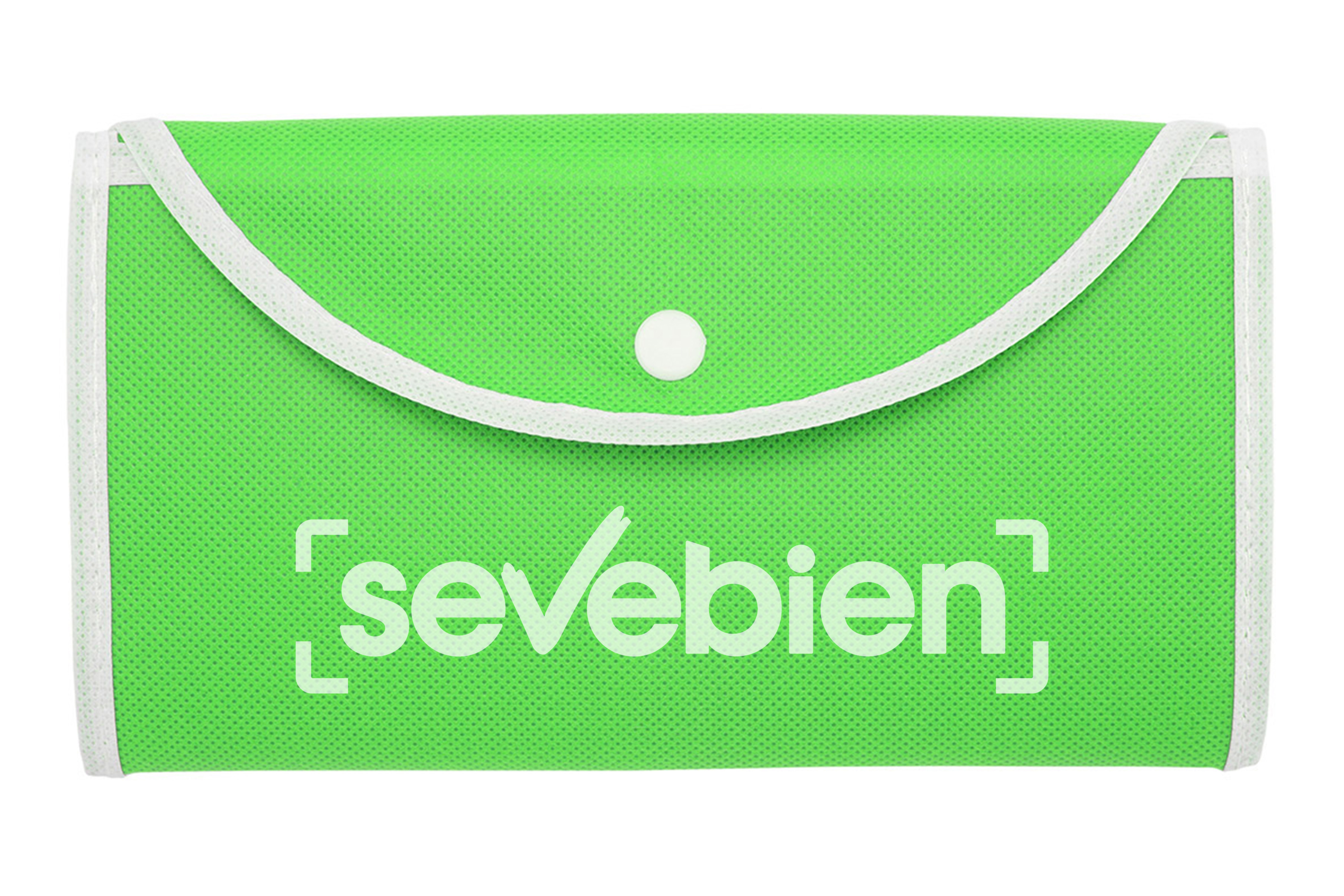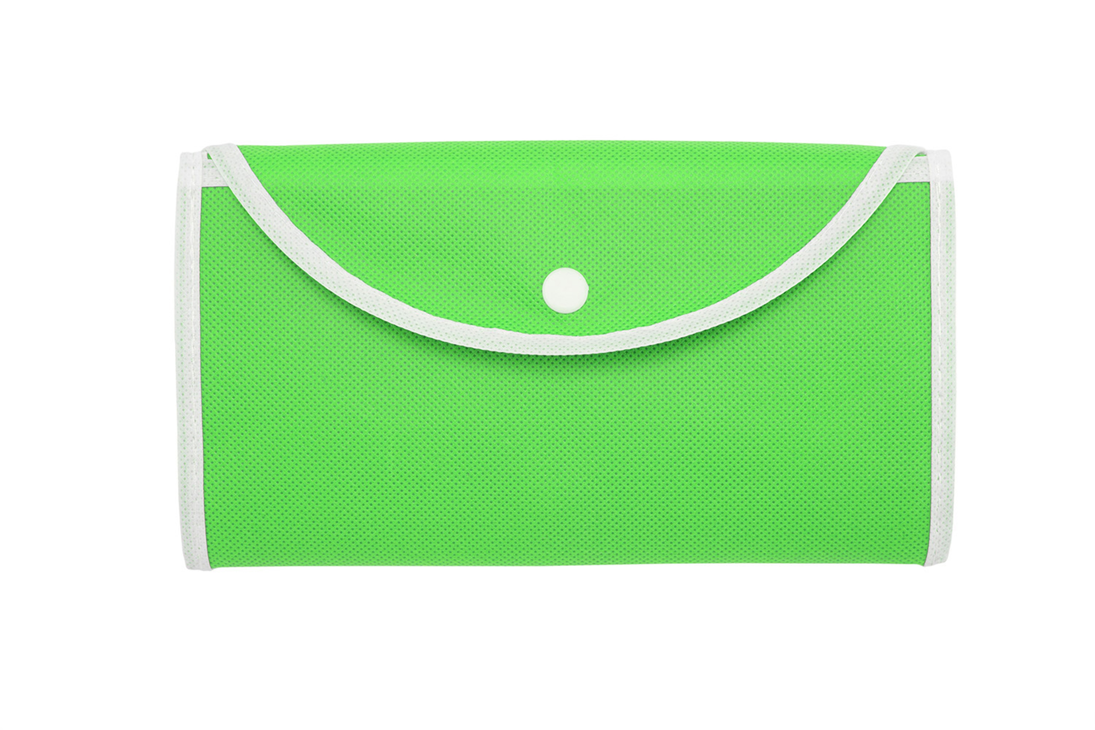 40 x 47.5 cm (abierta) / 20,5 x 12 cm (cerrada)-Non-woven. Bolsa que posee un bolsillo frontal con vivos blancos alrededor y un cierre de botón.