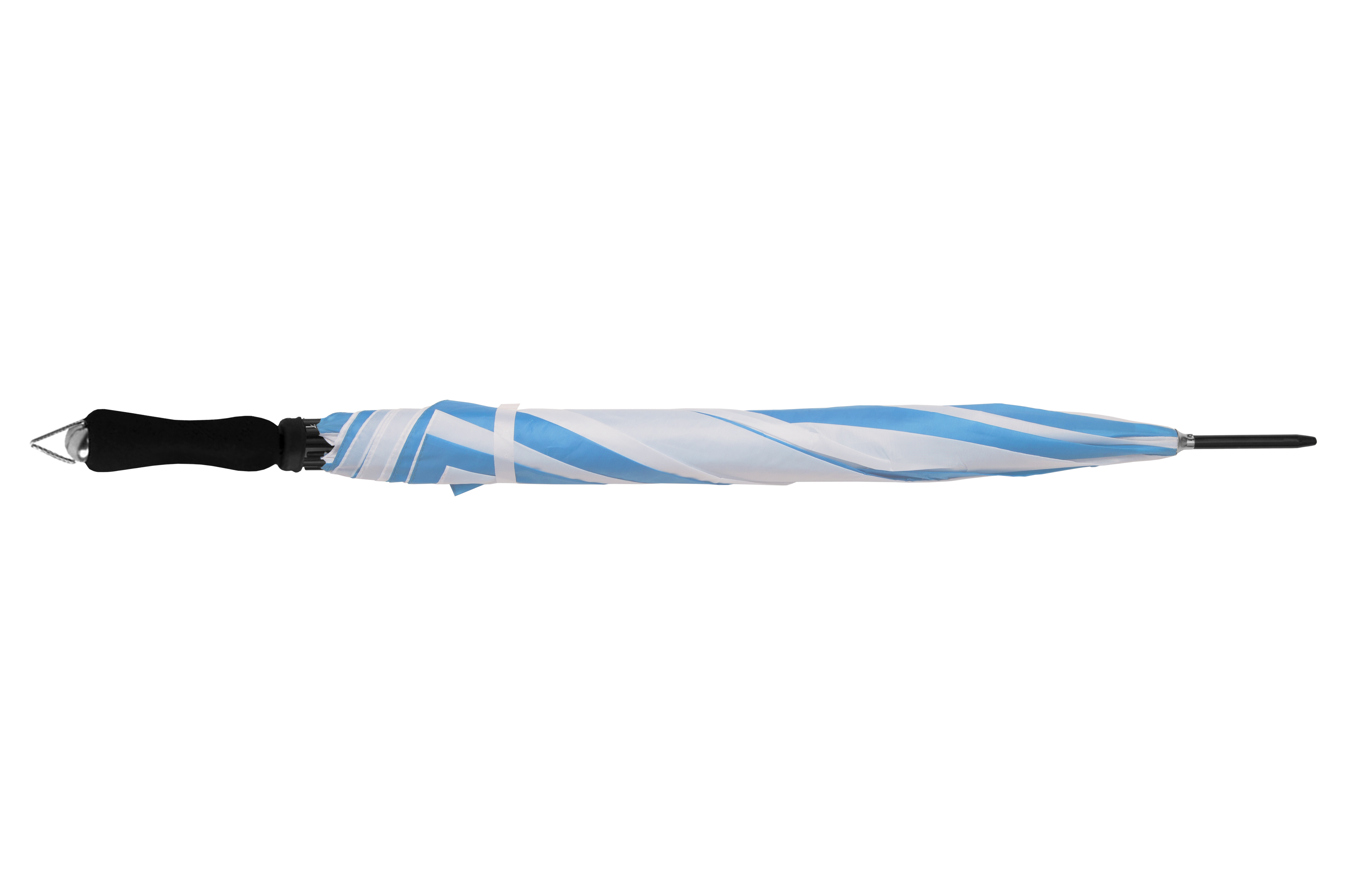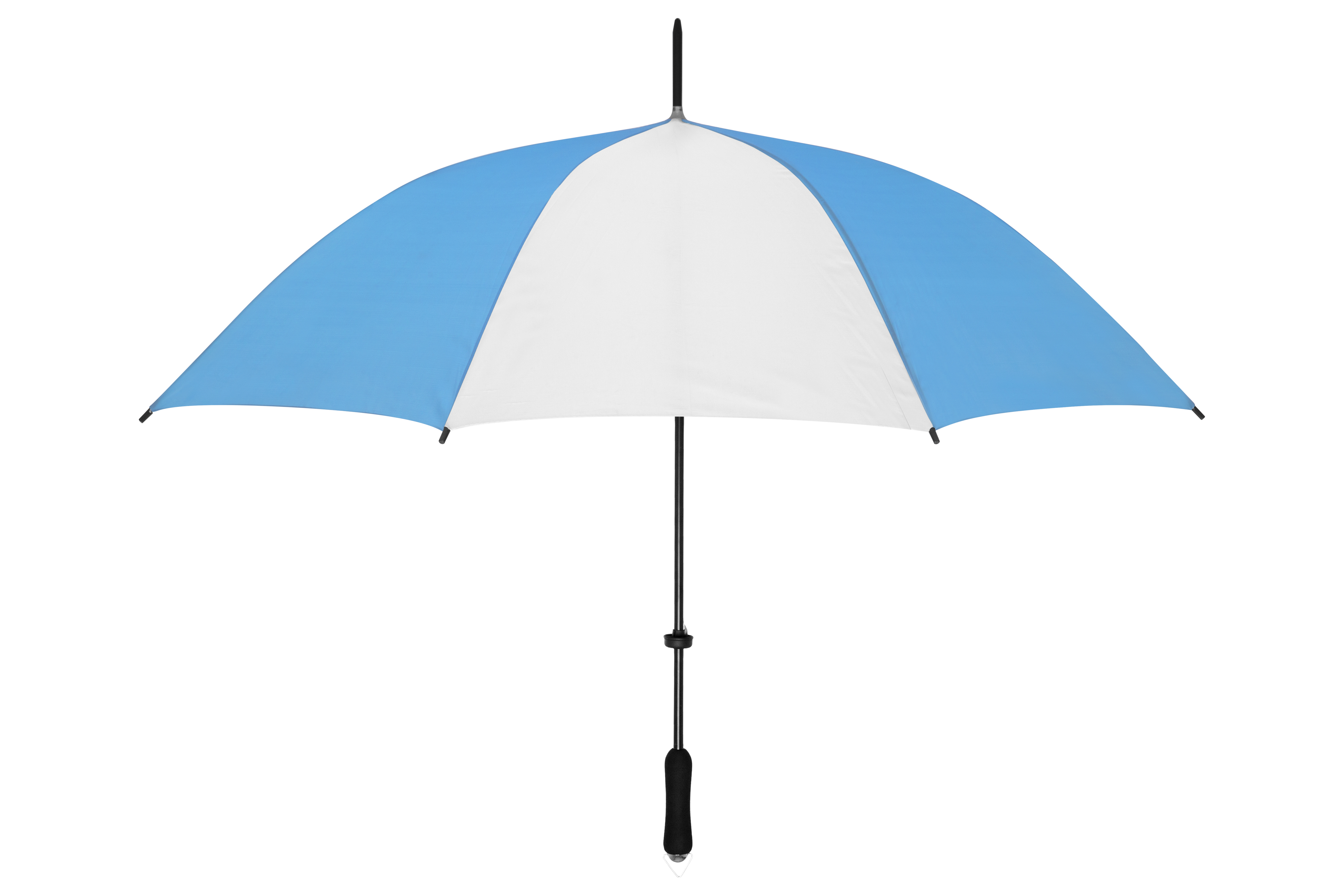 Ø 123 cm. Poliester. Caña: 75cm. Ocho gajos, mango recto de goma eva, caña y varillas dobles metálicas. APERTURA AUTOMÁTICA.