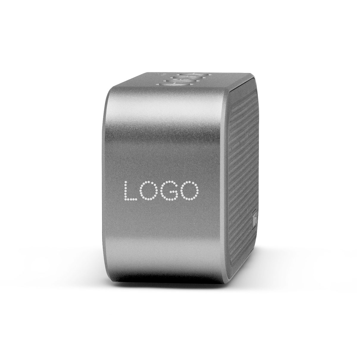 Alumino + Plástico soft touch. 10,5 x 6,2 x 4 cm. Bluetooth 4.0. Batería de 950 mAh. Sonido stereo + Función manos libres + Lector microSD