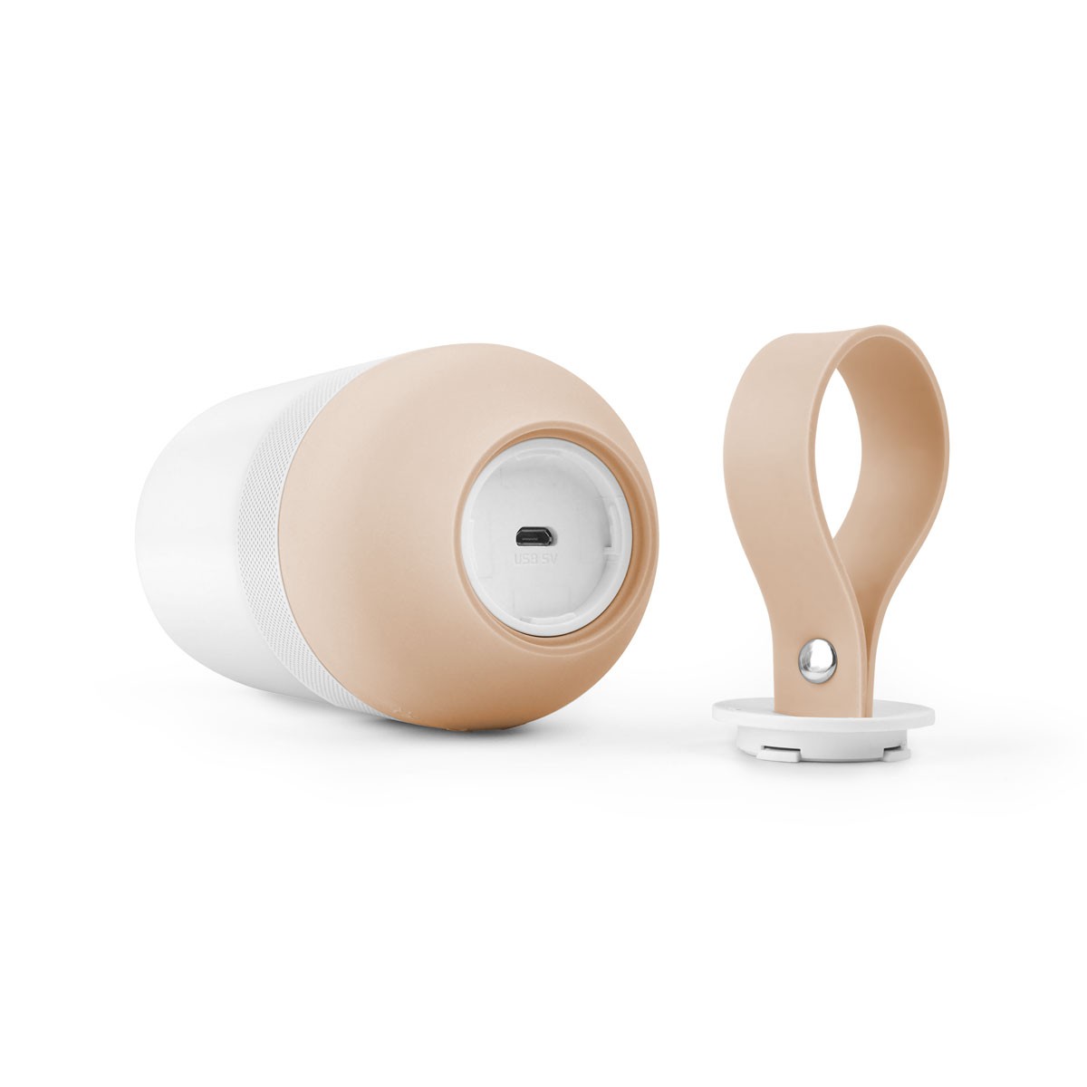 Ø 7,6 x 21,5 cm. Plástico siliconado. Parlante luminoso bluetooth. Ideal para llevar música a todos lados. Emite una suave y cálida luz regulable y se carga usb. Presentación en caja de regalo.