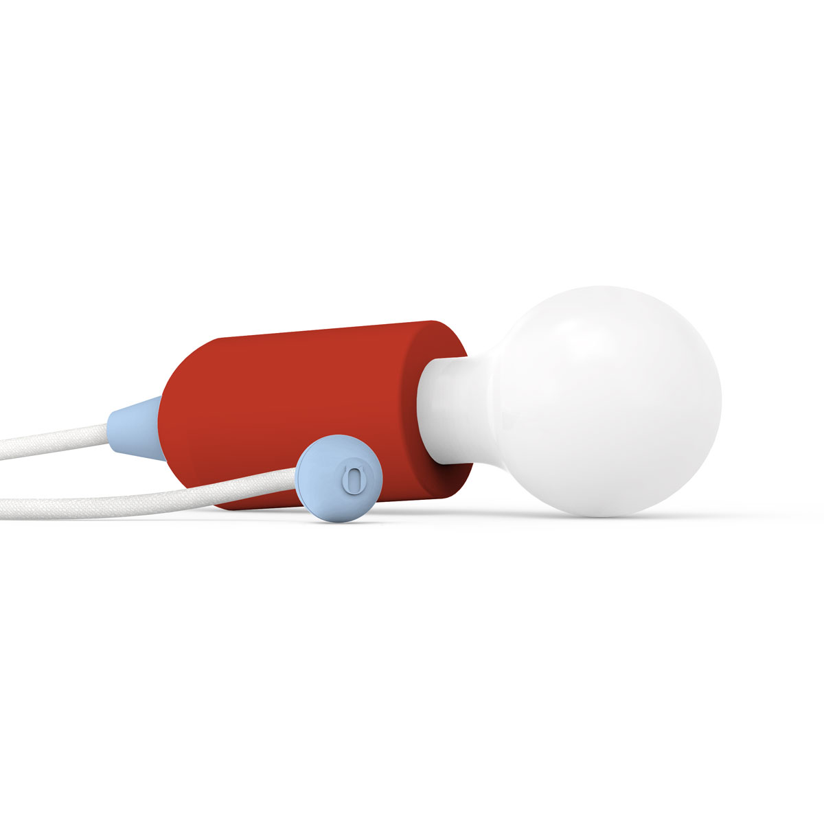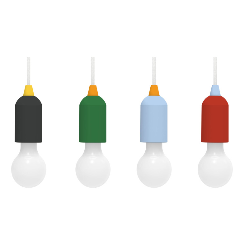 Ø 6 x 16 cm. Plástico terminación soft touch. Lámpara portatil. Una brillante solución para usar donde quieras. Enciende y apaga tirando suavemente del cordón hasta escuchar el click. Luz LED. Funciona con 3 pilas AAA (no incluidas). Largo del cordón 95 cm. Presentación en caja de regalo.
