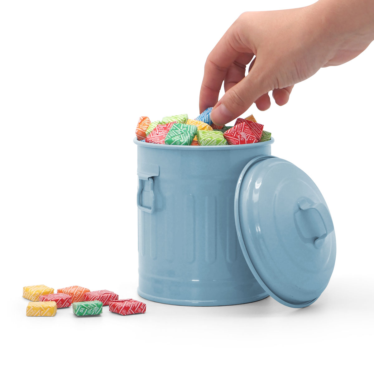Pequeño tacho metálico multiuso con tapa y manijas laterales. GATO es distribuidor exclusivo de este producto DULTON en Argentina. Metal. Ø 11 x 16 cm.
