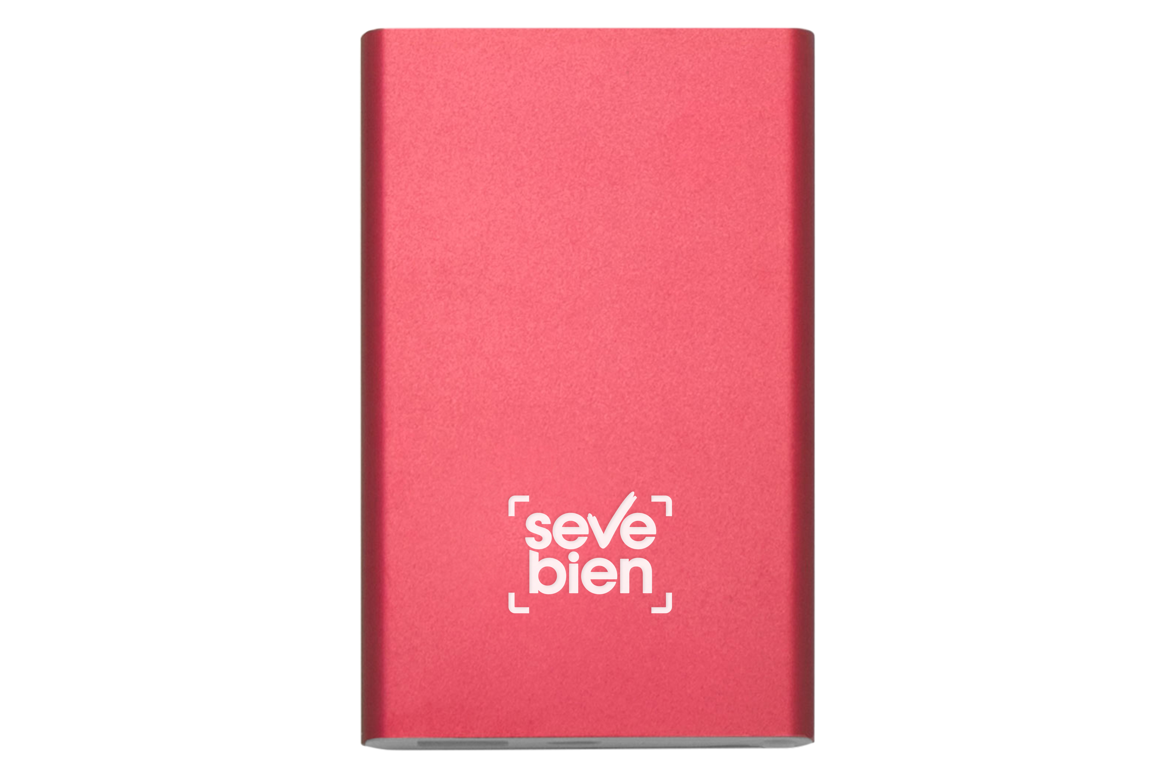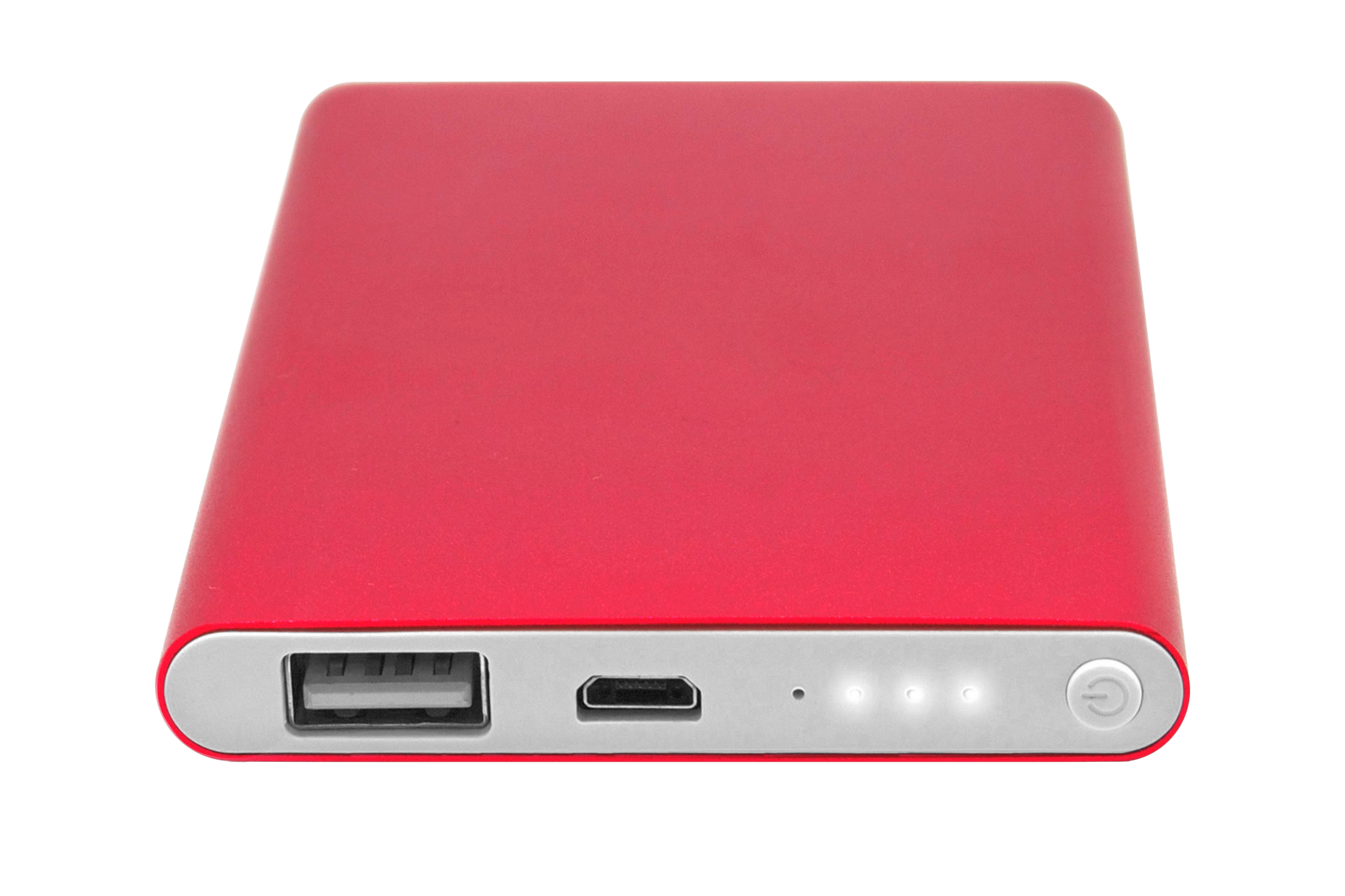 11 x 6,5 x 1 cm. Capacidad 4000 mah. Metálico. Power Bank. Cuerpo de color. Dos entradas: una USB y otra mini USB. Botón de encendido y luces led indicadora de carga. Con certificación de calidad. Presentación en caja de regalo.