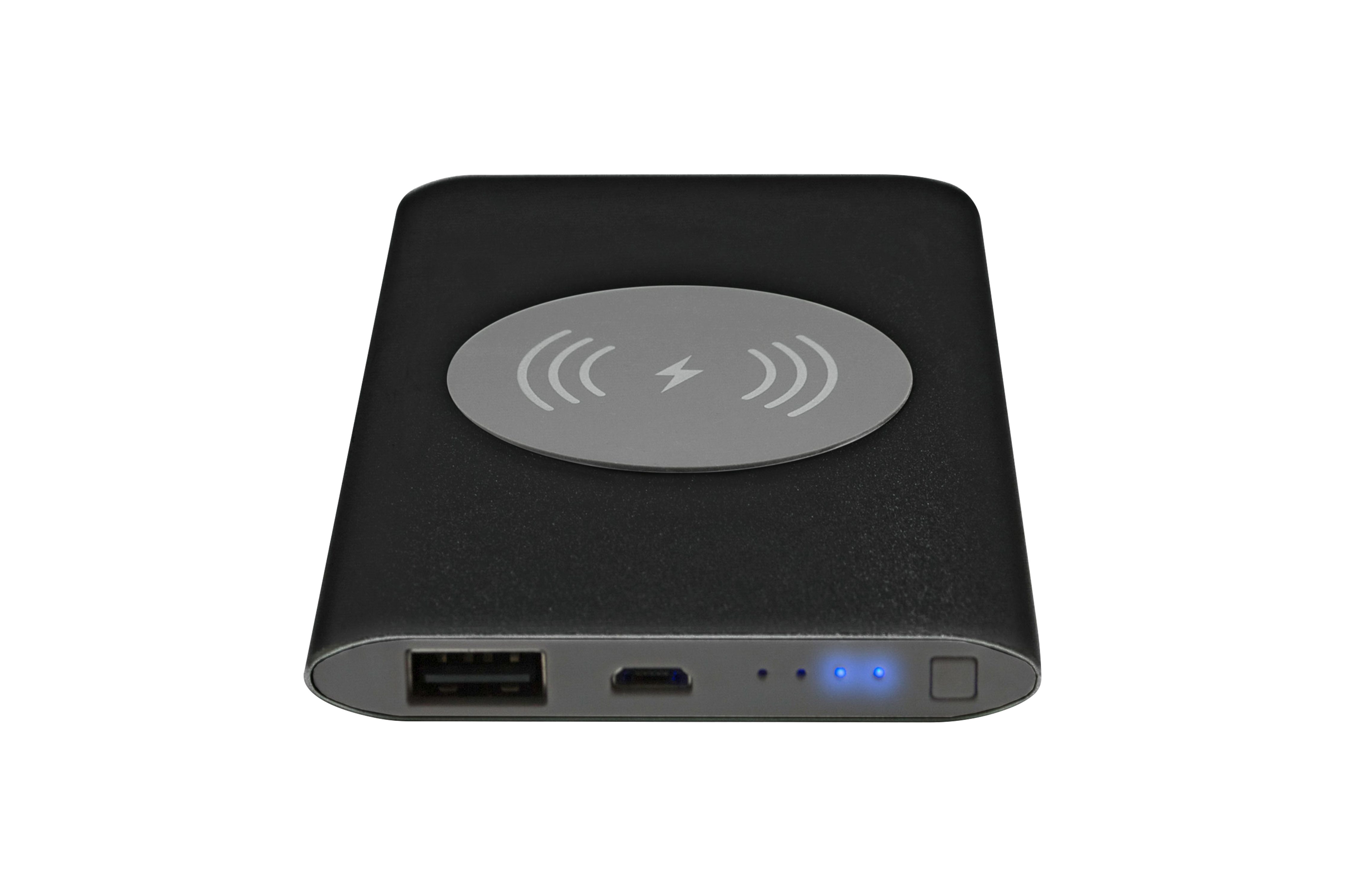 Metálico. 12,2 x 7 x 1 cm. Capacidad 4000 mah. Power Bank inalambrico, cuerpo delgado, cuenta con circulo engomado para apoyo del celular. Carga por contacto sin cables. Entrada USB y mini USB. Botón de encendido y luces led indicadora de carga. Incluye conector type C. Presentación en caja de regalo. TENGA EN CUENTA QUE ES NECESARIO TENER TECNOLOGÍA Qi PARA QUE SE EFECTUE LA CARGA, SI NO CUENTA CON ESTA TECNOLOGÍA, LA POWER BANK PUEDE SER USADA CON CABLE.