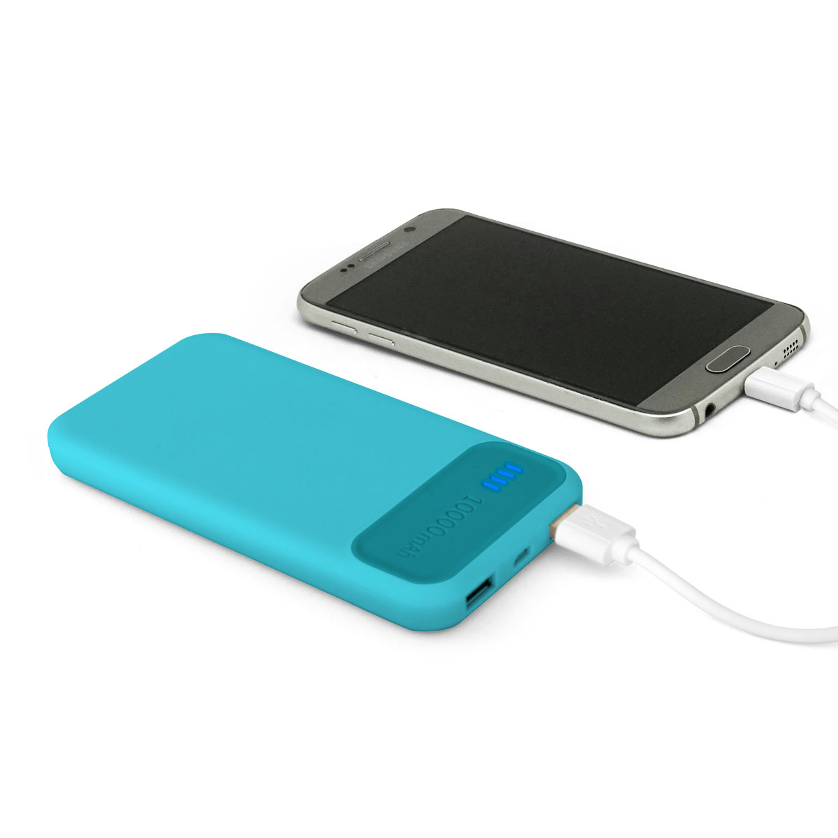 7,8 x 14,5 x 1,4 cm. ABS + Silicona. Capacidad 10000 mAh. 2 salidas de carga, de 1A y 2.1A. Cargador externo de 10000 mAh con doble salida de carga e indicador del estado de carga disponible. Compatible con celulares, tabletas y otros dispositivos. Presentación en caja de regalo.