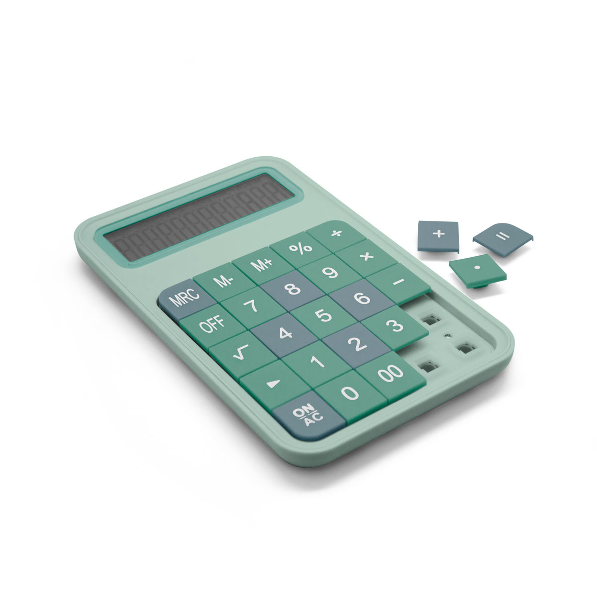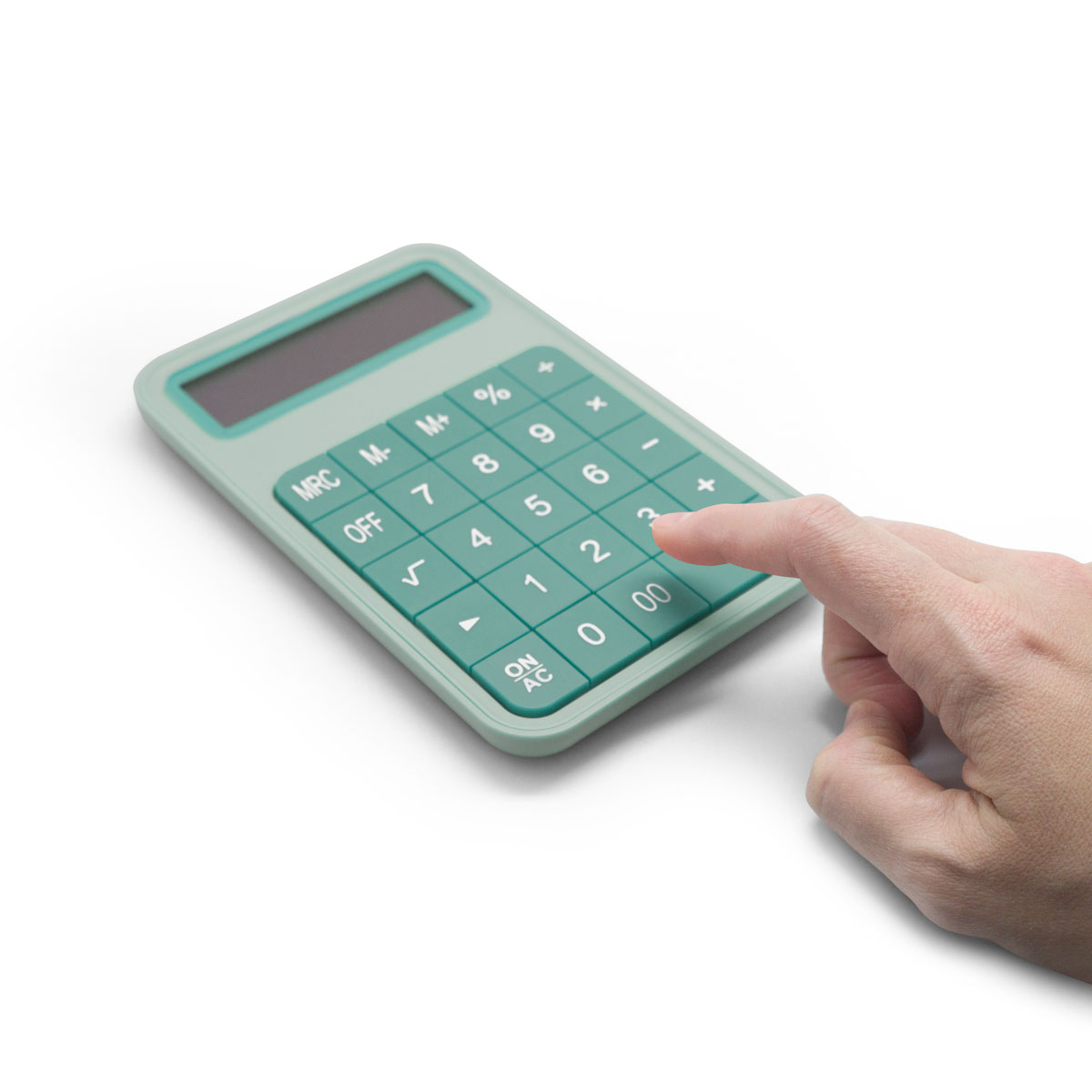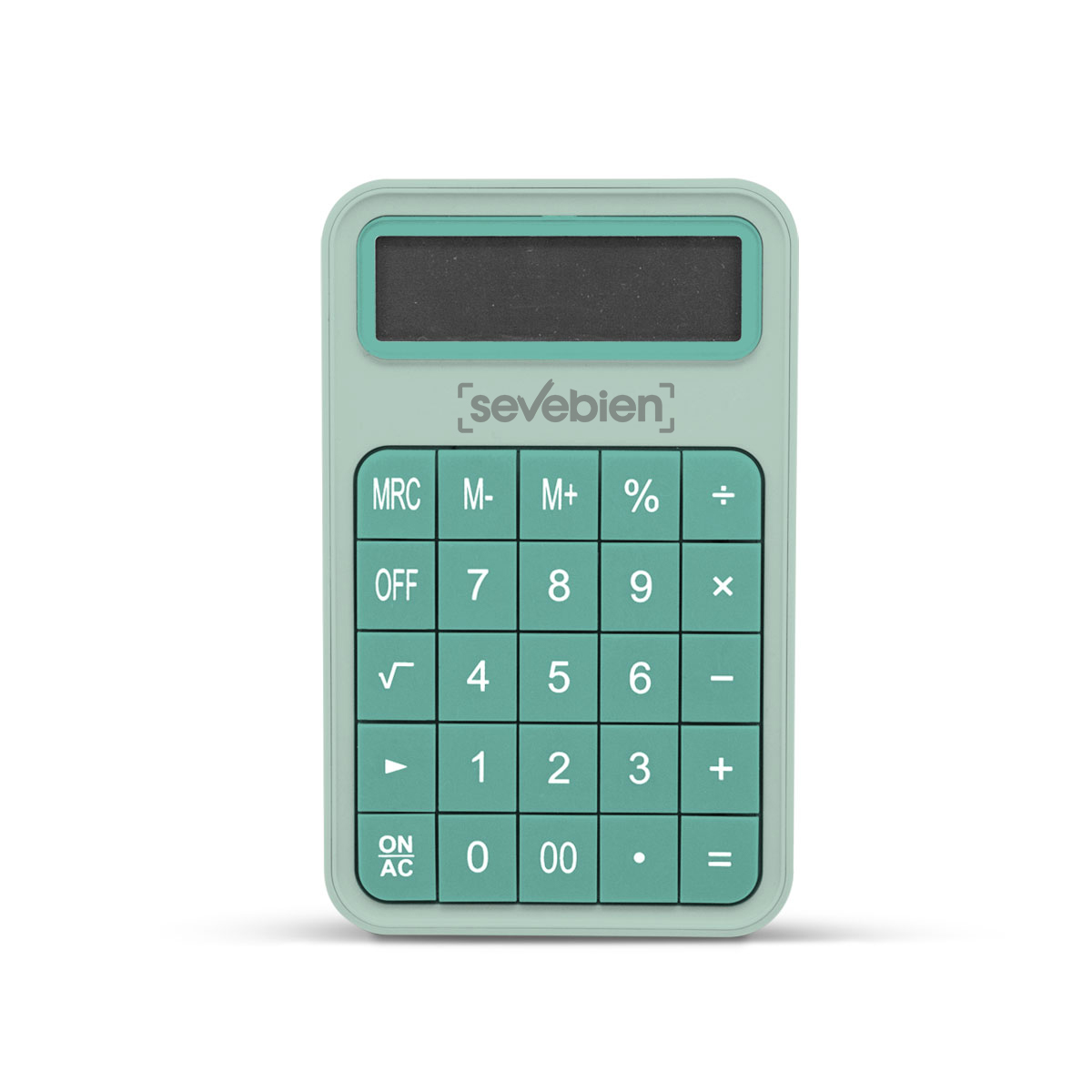 10,7 x 17 x 1,5 cm. Plástico. Calculadora con 2 colores de teclados intercambiables para crear la combinación que más te guste.