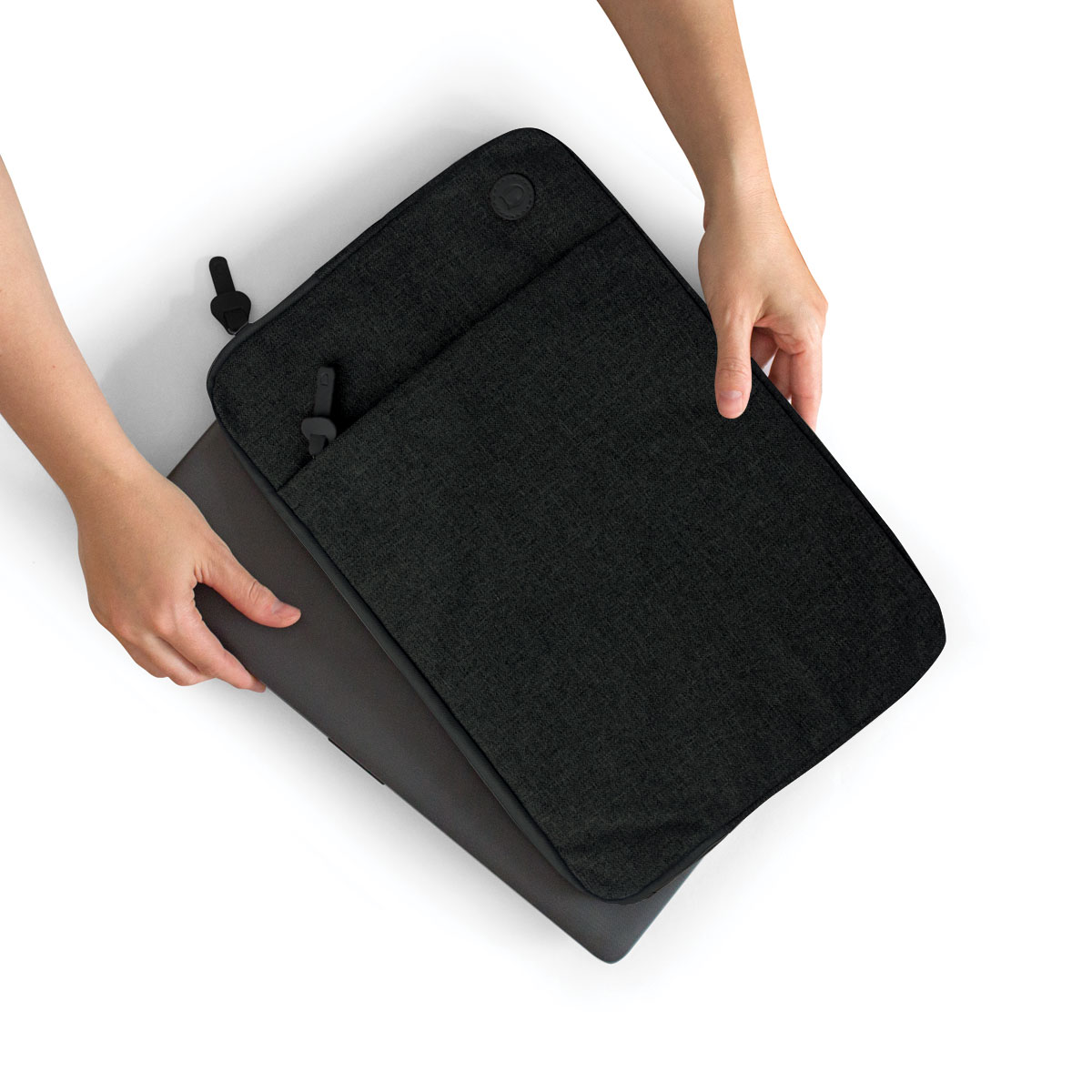 40 x 26 x 2 cm. Poliéster + Nylon + Poliuretano.. Sobre Porta Notebooks. Práctica funda con protección para notebook de 15” y bolsillo exterior con cierre.