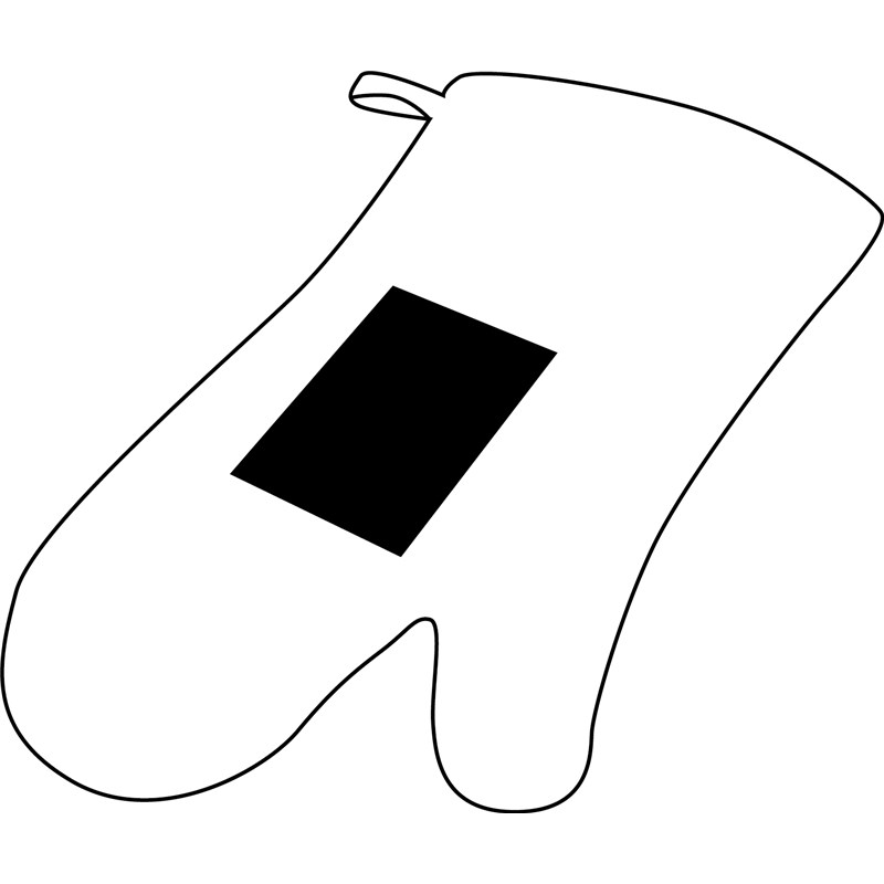 Algodón y silicona. 29,5 x 14,5 cm. Material aislante y detalle en silicona. Pequeño pasador para colgar.