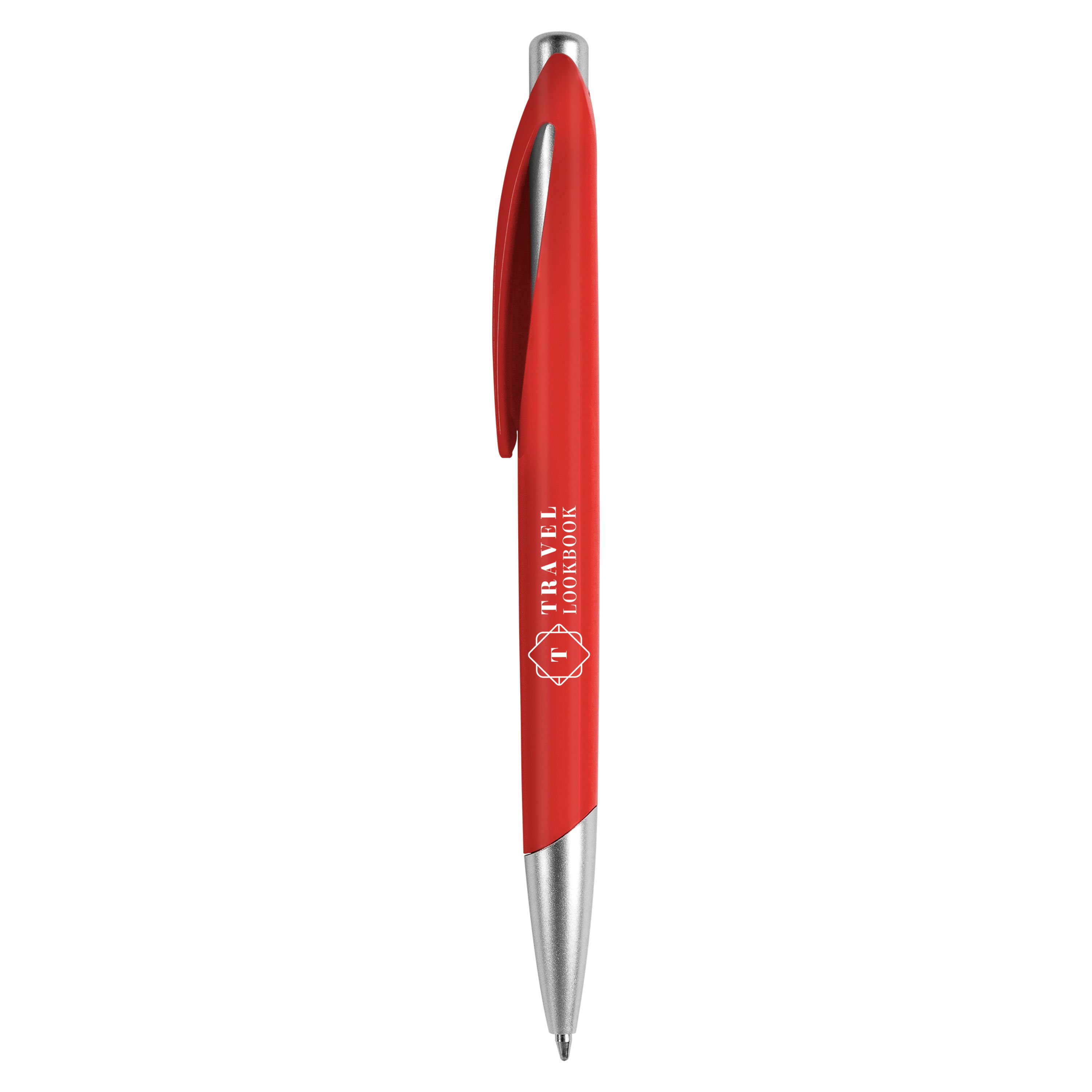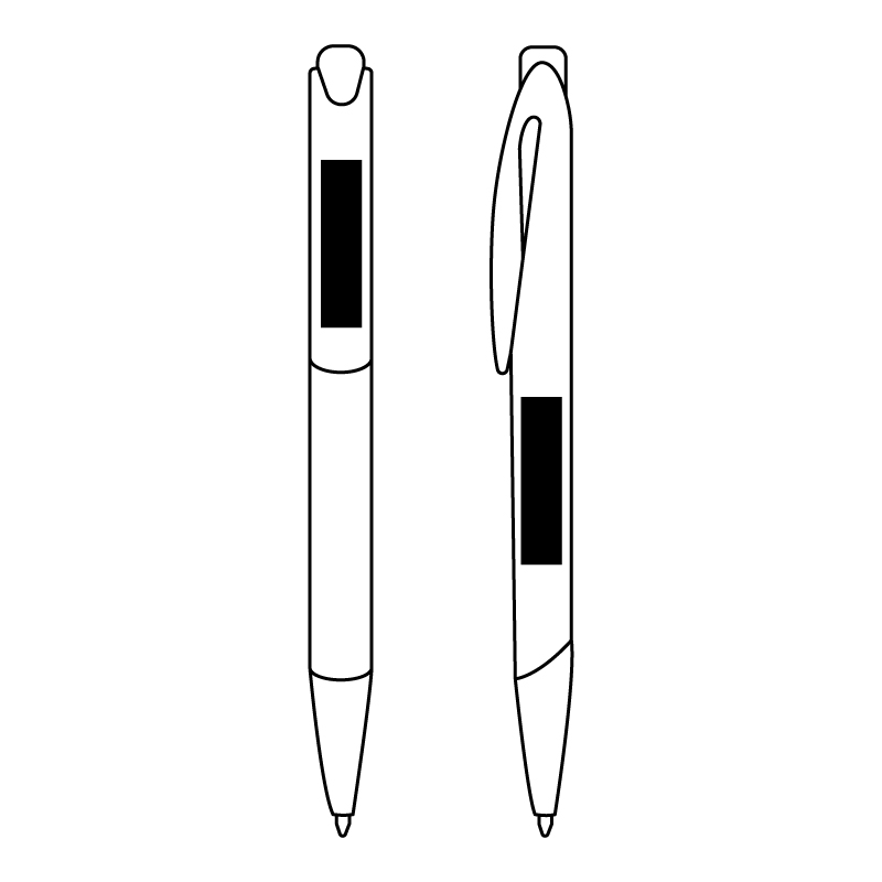 Plástico. Cuerpo de color y detalles de color plata debajo del clip, pulsador y puntera.