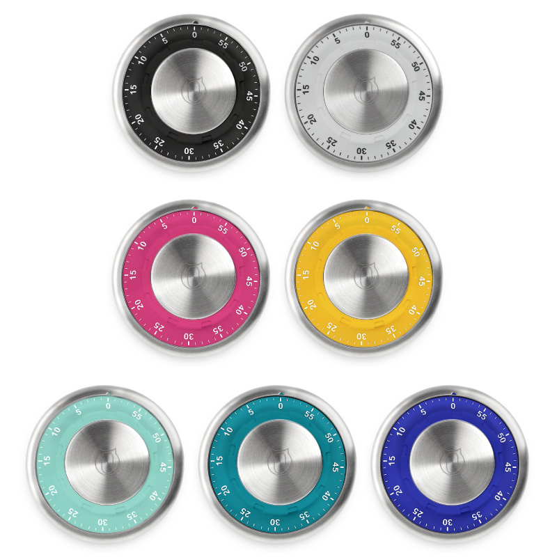 Ø 9,5 x 4,5 cm. Plástico + metal. Timer con imán. La mejor combinación para optimizar el tiempo. Presentación en caja de regalo.