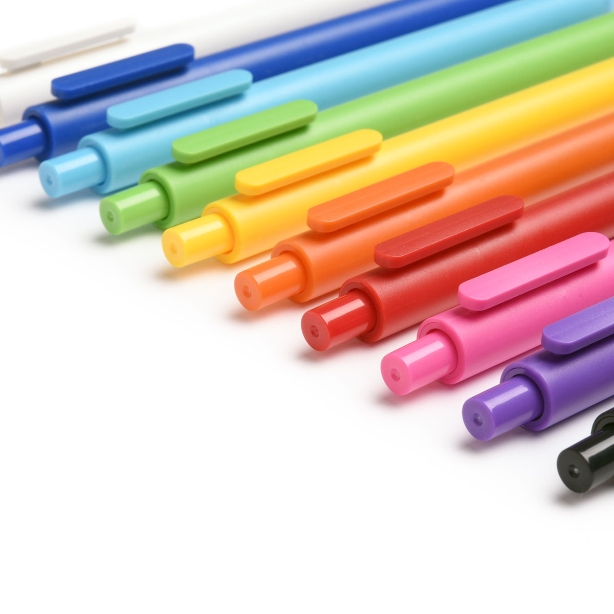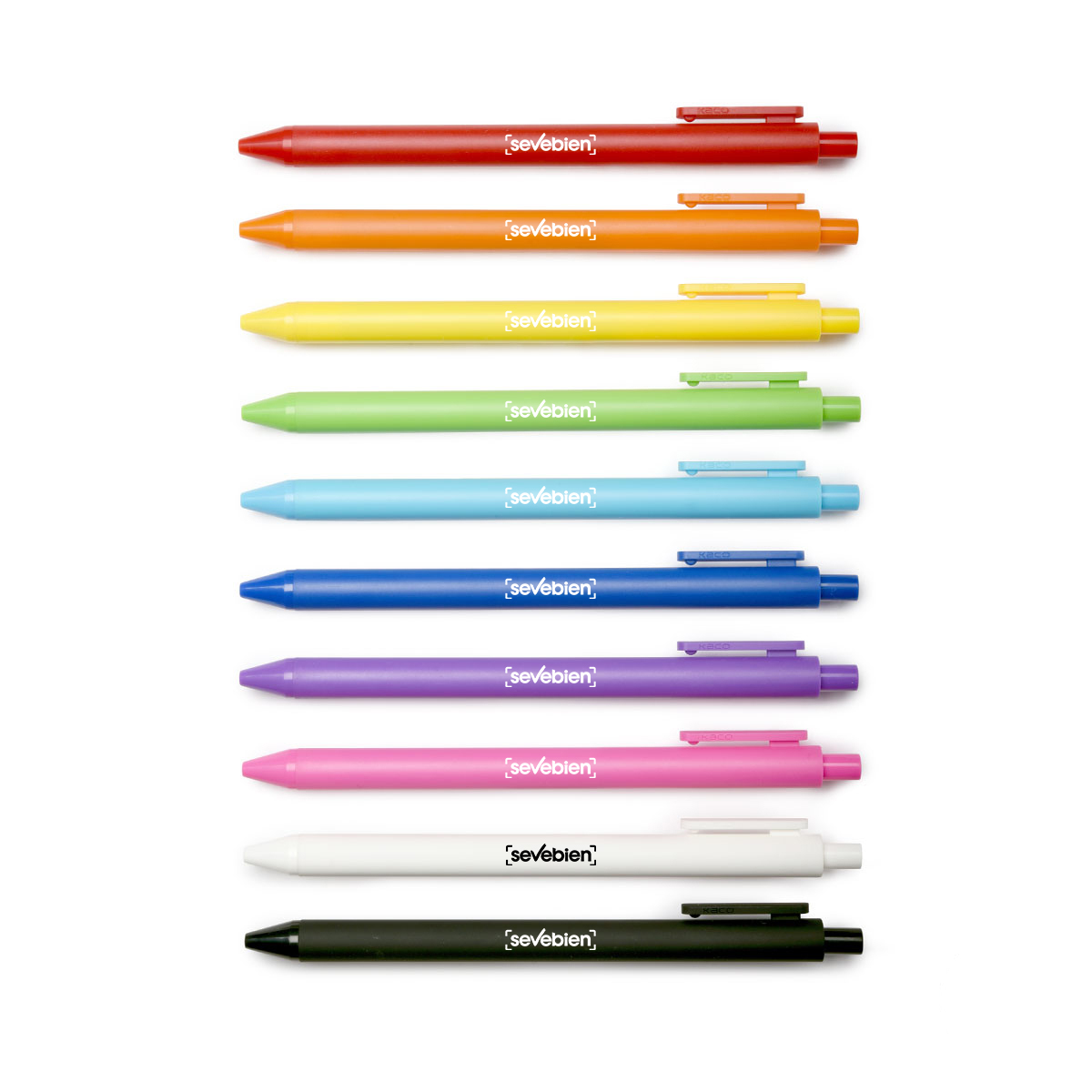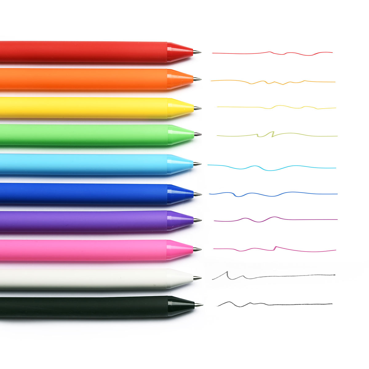 Ø 1 x 14,6 cm. Plástico terminación Soft Touch. Trazo de 0,5 mm. Set de 10 bolígrafos retráctiles con cuerpo soft touch y tinta gel del color del cuerpo. Presentación en caja de regalo.