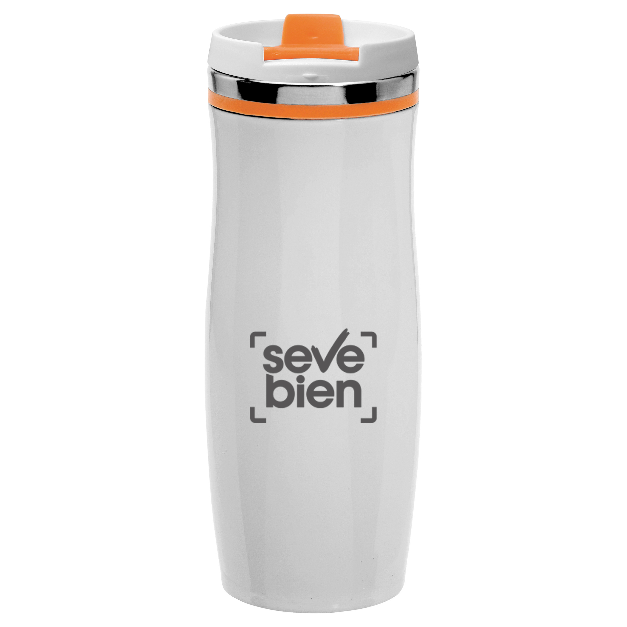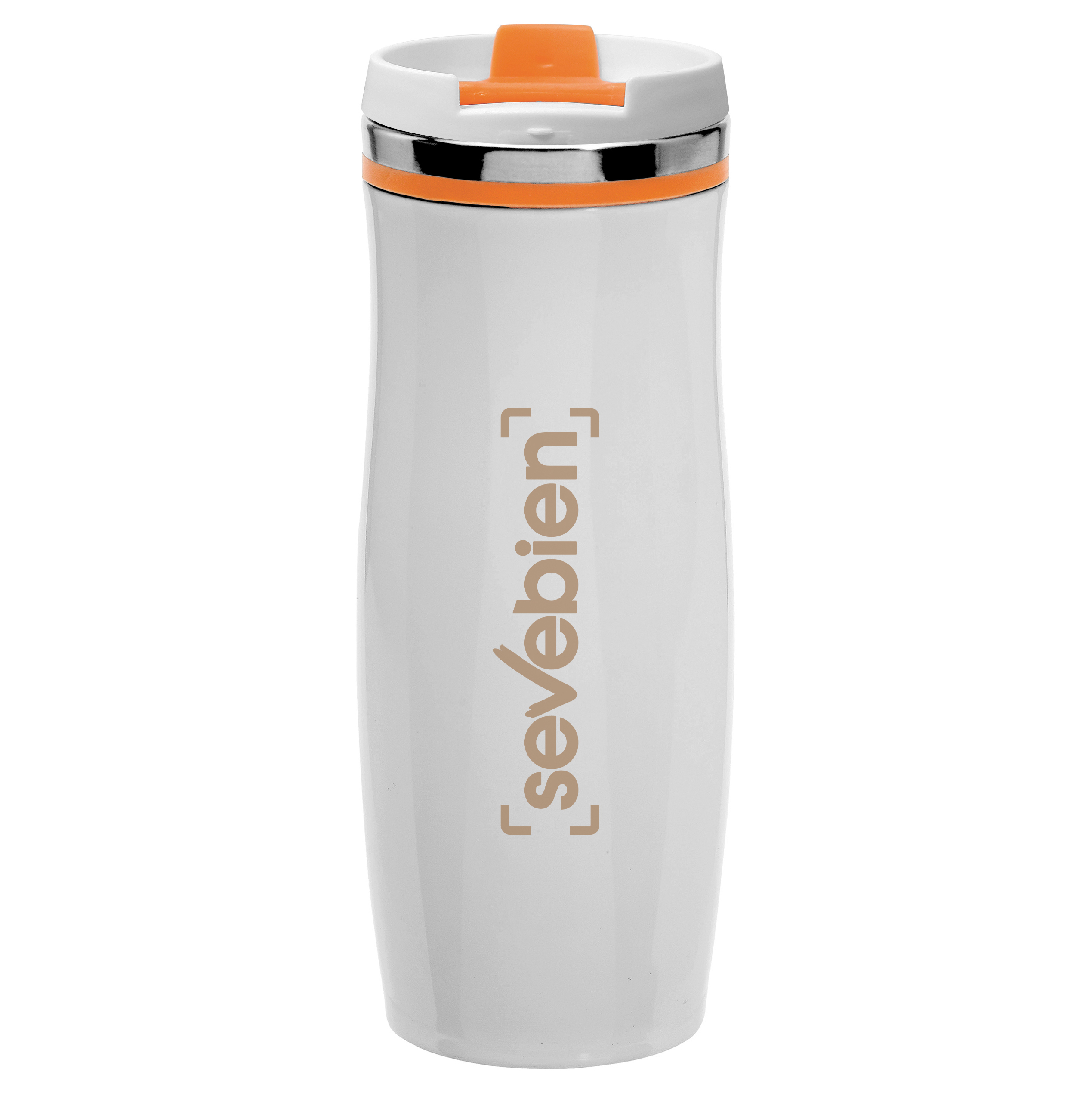 Ø 6,8 x 19,5 cm. Capacidad 380 ml. Acero inoxidable. Mug doble pared. Interior de acero 304 y exterior de acero 201. Mantiene las bebidas frías o calientes por más tiempo. Presentación en caja de regalo.