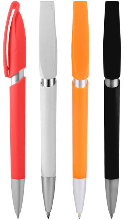 Plástico. Apertura retráctil con pulsador. Clip plástico. Color plata en puntera y cuerpo. Tinta Negra.