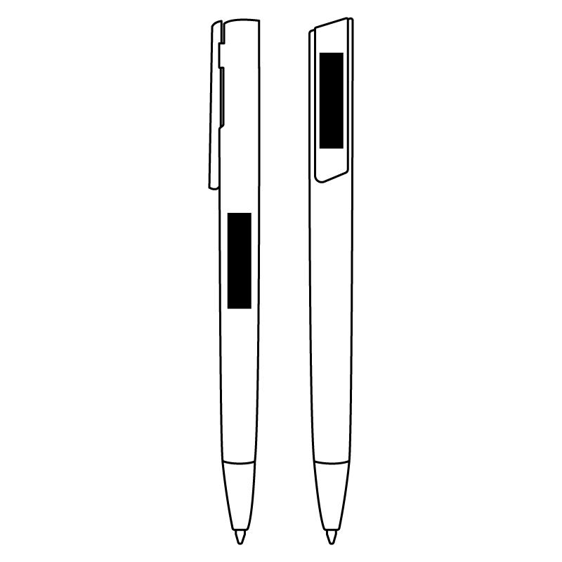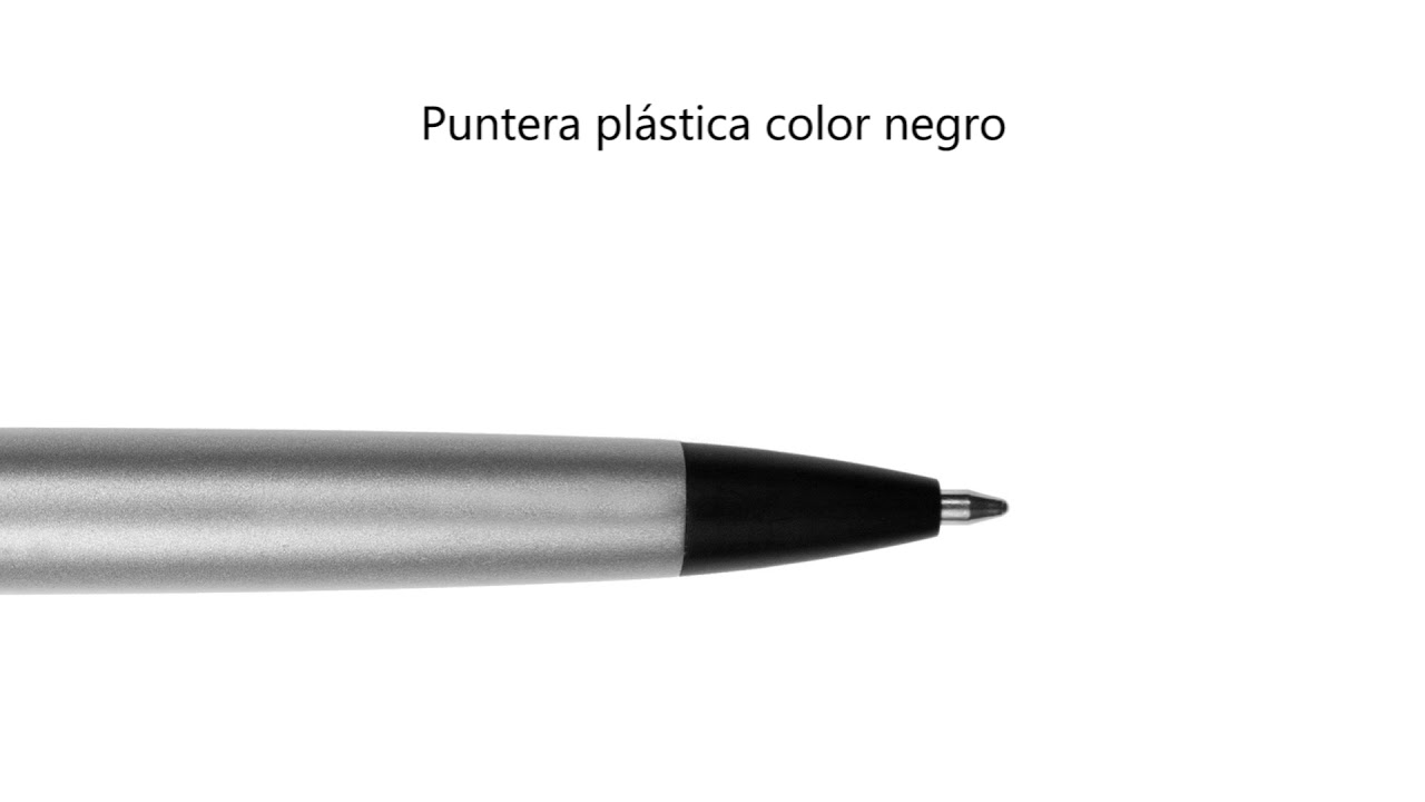 Plástico. Cuerpo color. Clip pulsador y puntera color negro. Tinta negra.