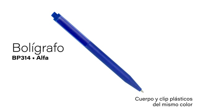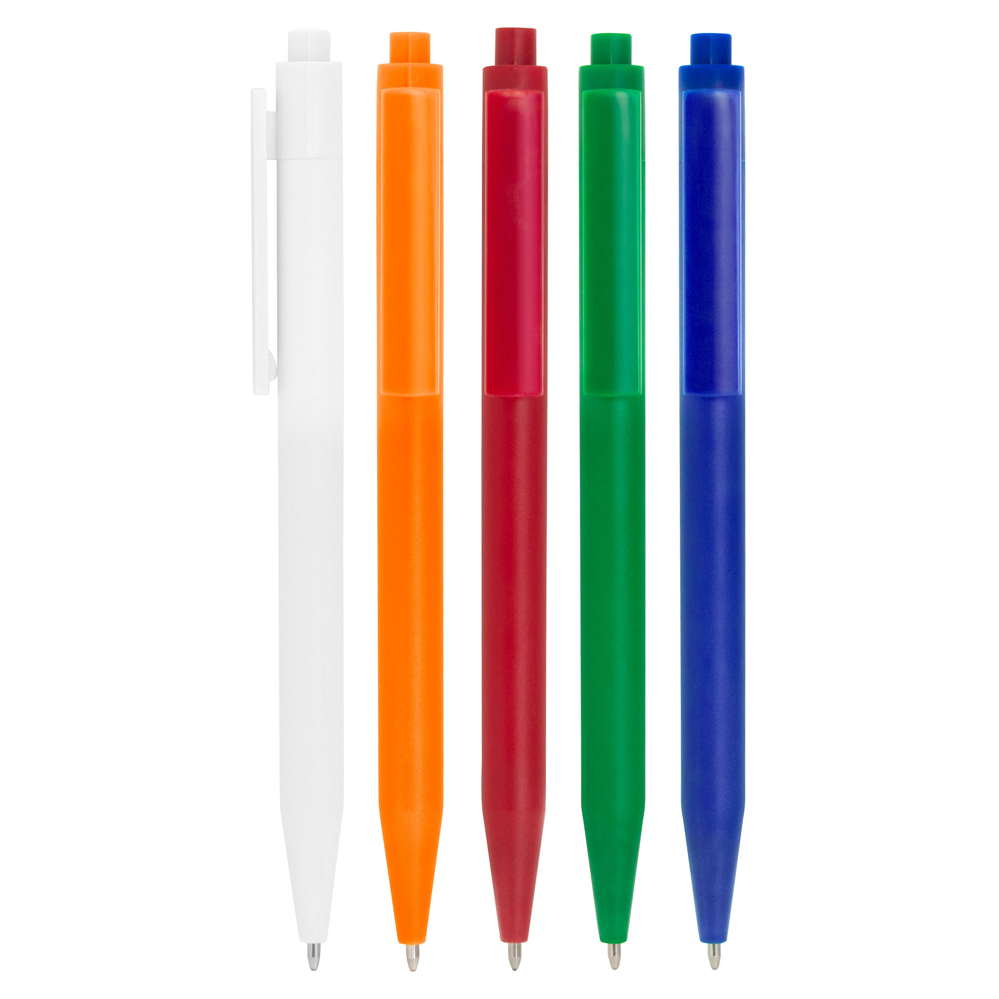 Plástico ABS. Bolígrafo retráctil. Cuerpo y clip plásticos del mismo color, cuerpo acabado mate y clip acabado brillante. Tinta negra. Amplia área de impresión.
