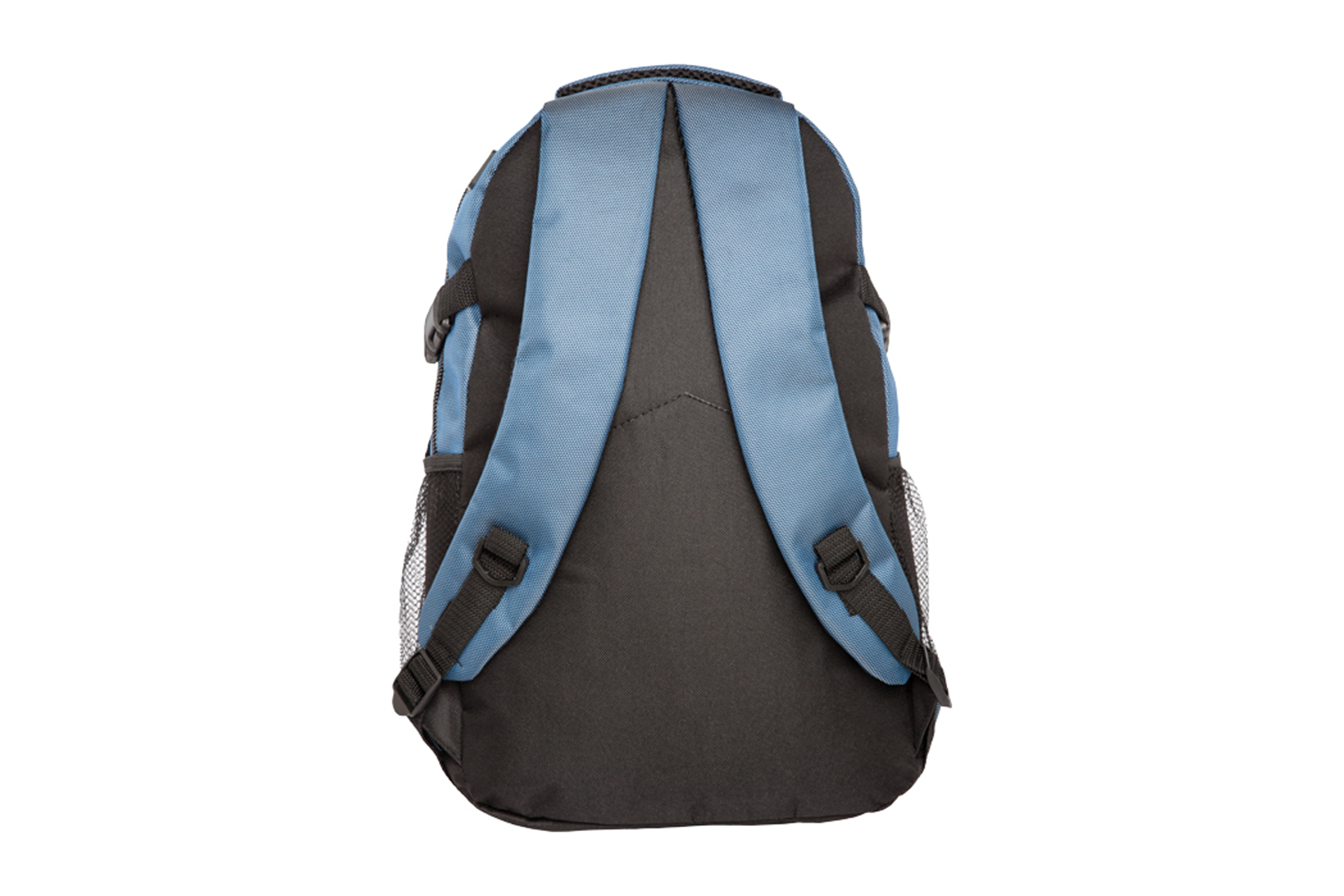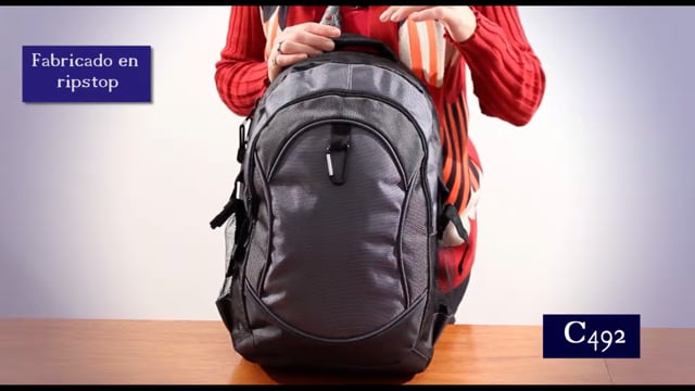 Ripstop (material anti-rasgado). 46,5 x 27,5 x 14 cm. Capacidad 14 litros. Aprox. Porta Notebook de hasta 15”. Bolsillo frontal con cierre y detalle de gancho mosquetón metálico. Dos bolsillos laterales de red. Salida para auriculares. Dos herrajes plásticos laterales que permite ajustar la mochila.