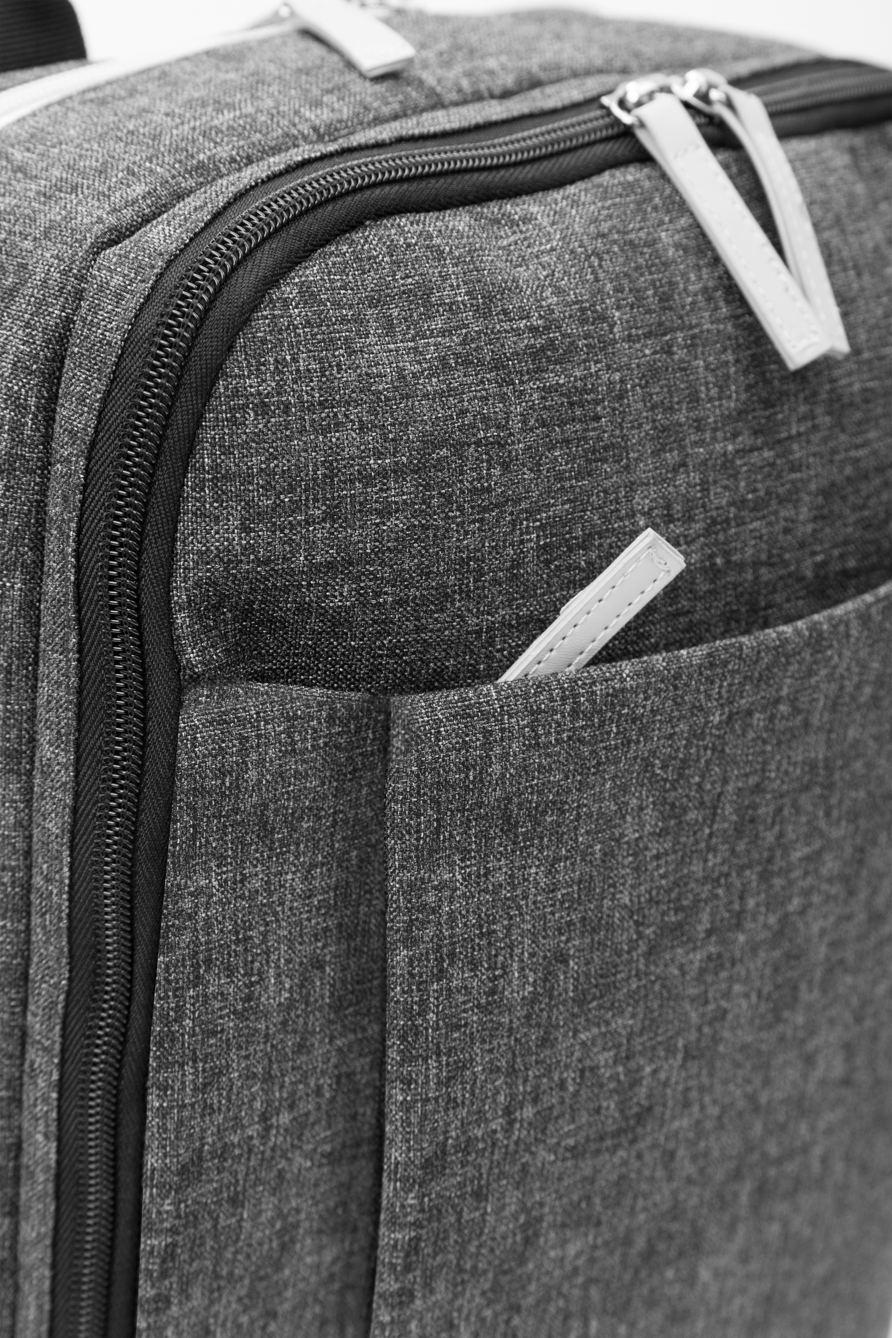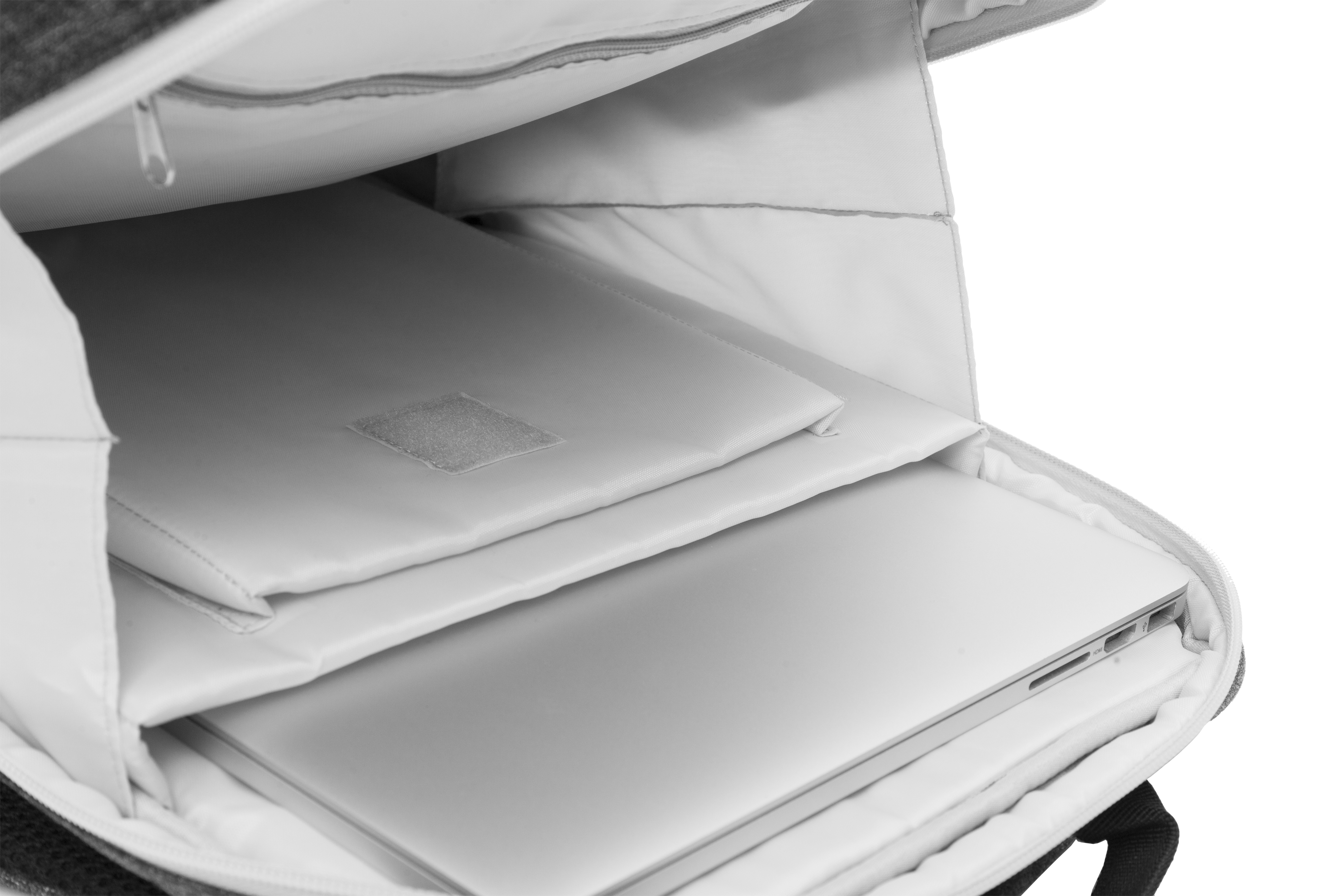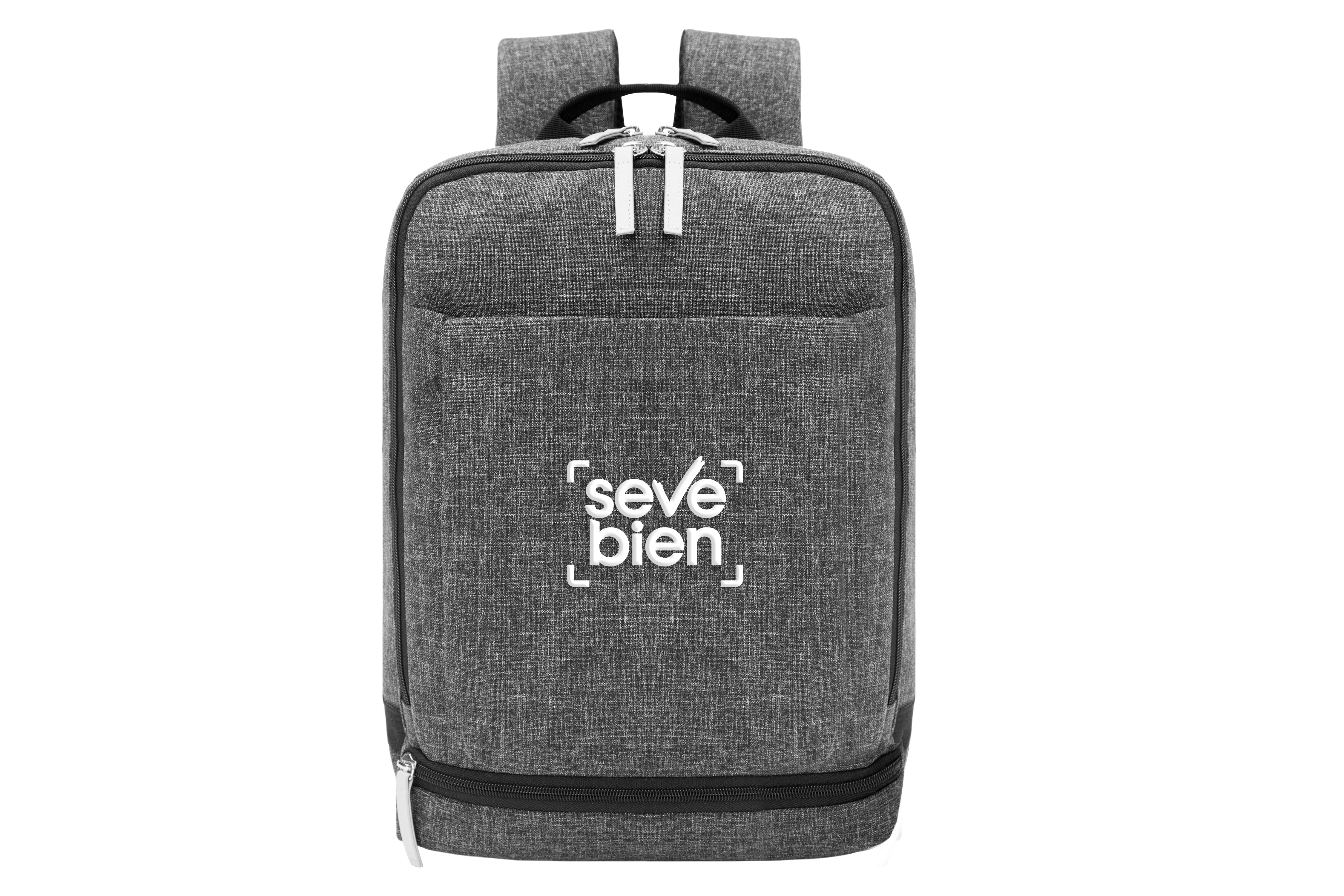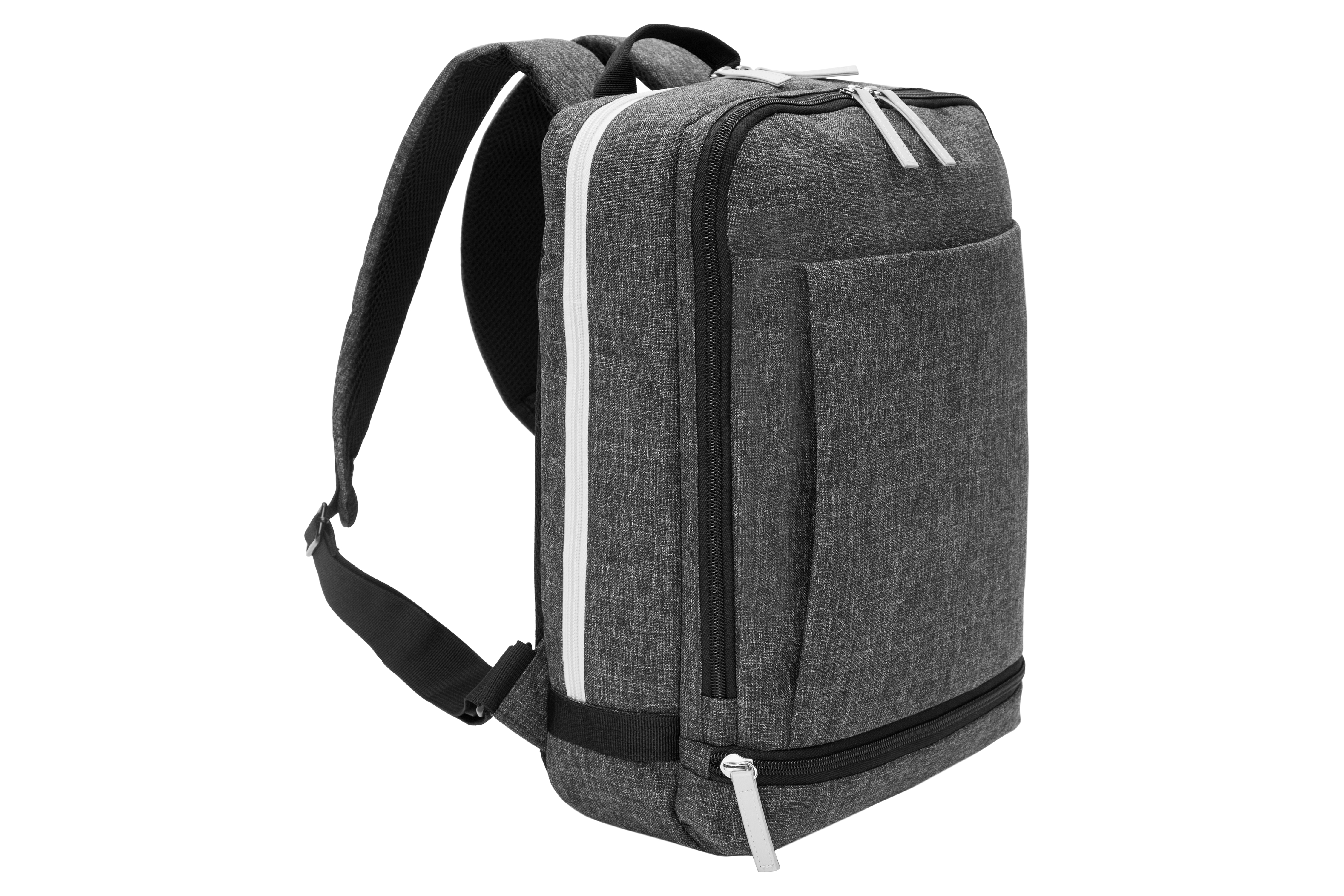 41 x 30 x 8,5 cm. Capacidad 10 litros. Poliéster 600D Snow: resistente al agua. Mochila portanotebook con tres bolsillos externos con cierre. Cuenta con dos compartimentos. Compartimento principal con bolsillo acolchado porta notebook de hasta 15" y tablet y un bolsillo amplio con cierre. Segundo compartimento con bolsillo amplio. Correas ajustables y espalda acolchadas con red que permite la ventilación. Tiradores de cierres de símil cuero.