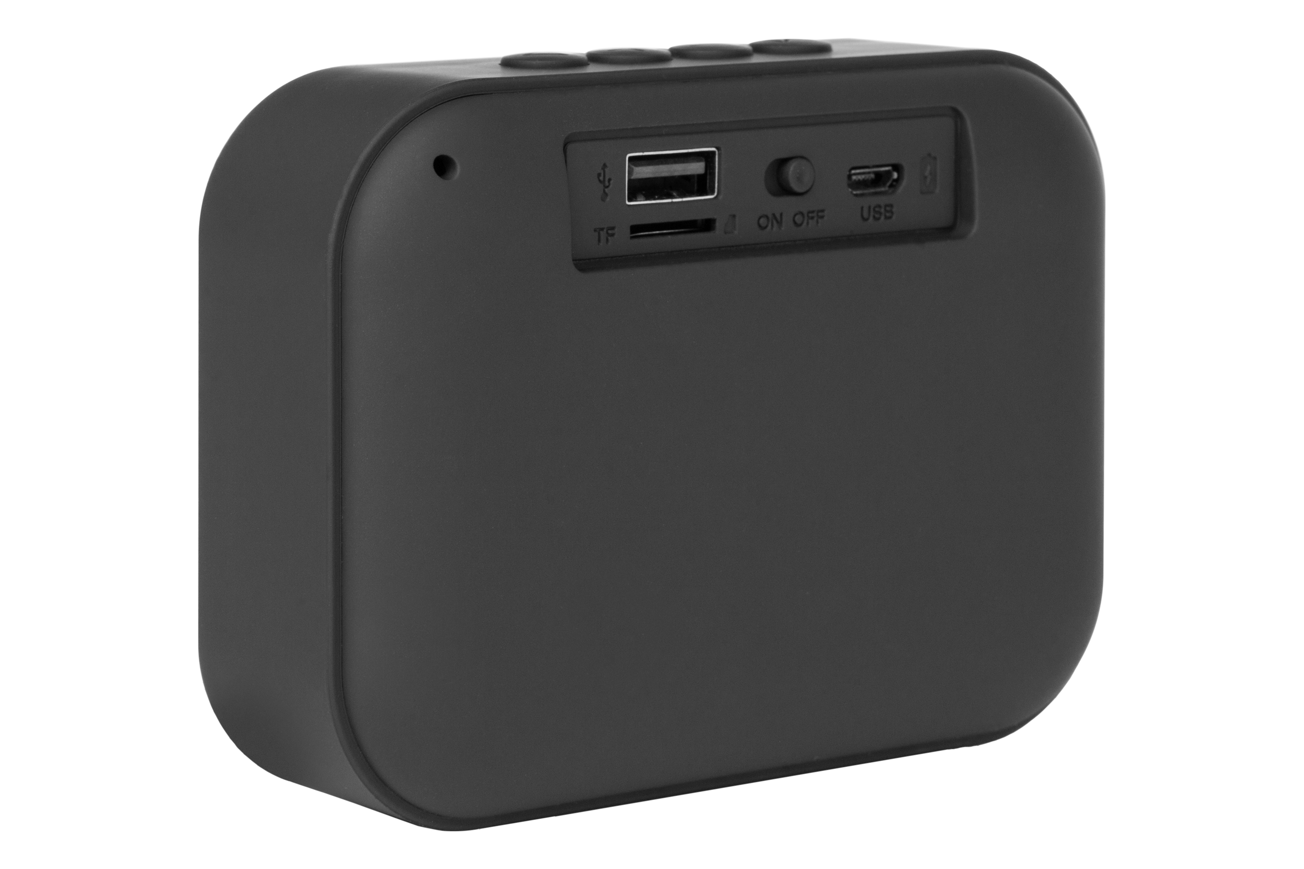 Parlante bluetooth versión 2.0. Potencia 3 watts. Capacidad Batería 300mAh. Alcance de transmisión hasta 10 mts. Voltaje DC 5V.En la parte superior, botones de modo, volumen y play. Con el botón Modo se elige entre las opciones de Bluetooth y USB. Opción de responder llamadas desde el parlante pulsando una vez el botón Play cuando entra la llamada. Base con detalles antideslizantes. Incluye cable USB para carga.