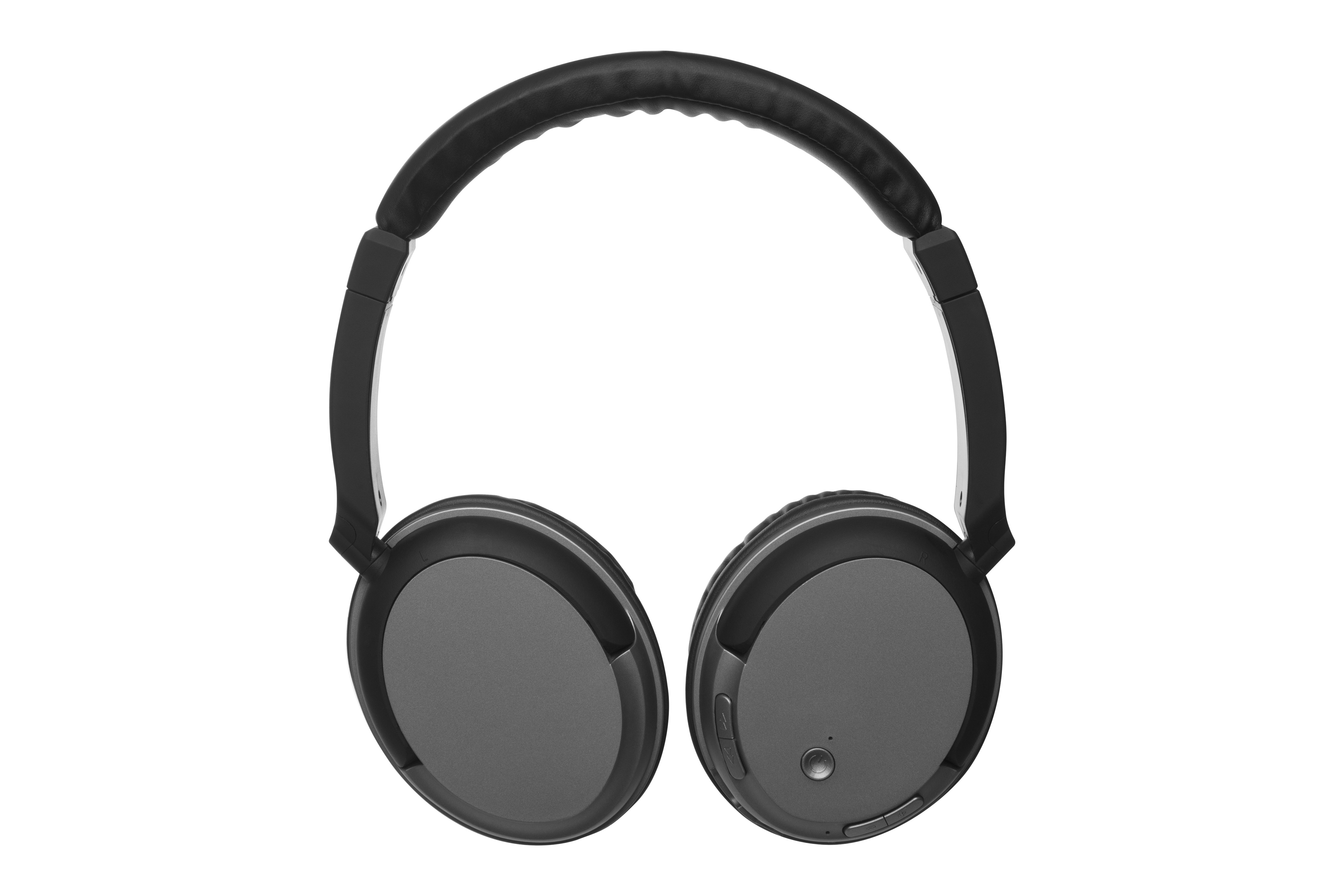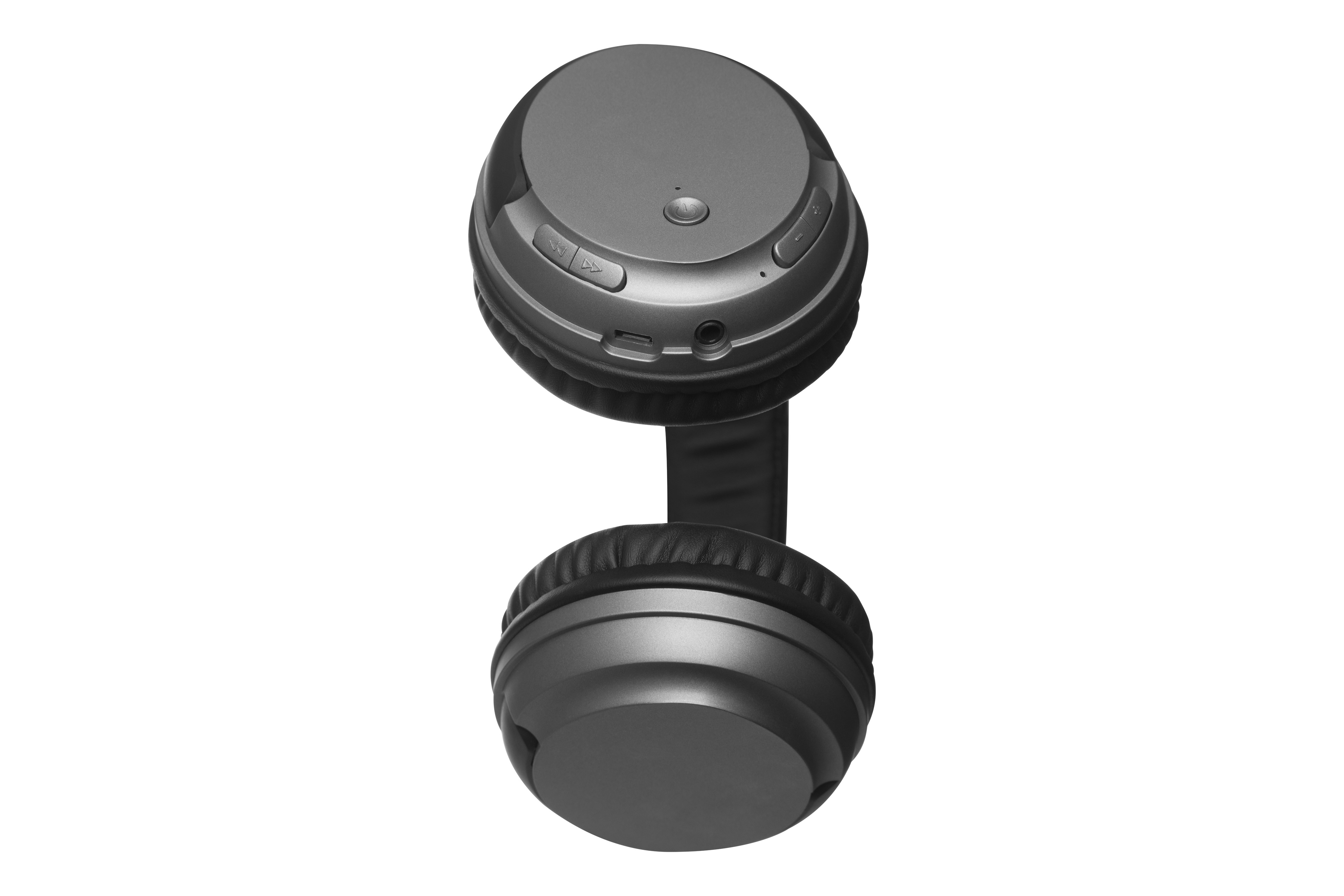 Plástico engomado y símil cuero. Ø 18,5 cm. Aprox. Sistema de sujeción en ambos lados. En uno de los costados del auricular botón de on/off y play/pausa. Botones de Volumen +/-, botones adelanto y retroceso de sonido. Los auriculares giran a 90° para facilitar el guardado. Funciona a través de Bluetooth. Se pueden realizar o recibir llamadas. Alcance 10 metros. Duración de la batería 6 hs. aprox. Ajustables. Incluye cable USB y de conexión.
