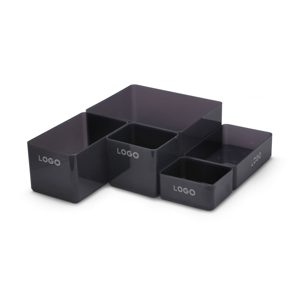 Organizador modular. 5 prácticos módulos apilables para organizar los espacios: escritorio, cocina, baño, placard. Ideales para ordenar y dividir cajones.