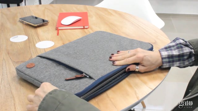 40 x 26 x 2 cm. Poliéster + Nylon + Poliuretano.. Sobre Porta Notebooks. Práctica funda con protección para notebook de 15” y bolsillo exterior con cierre.