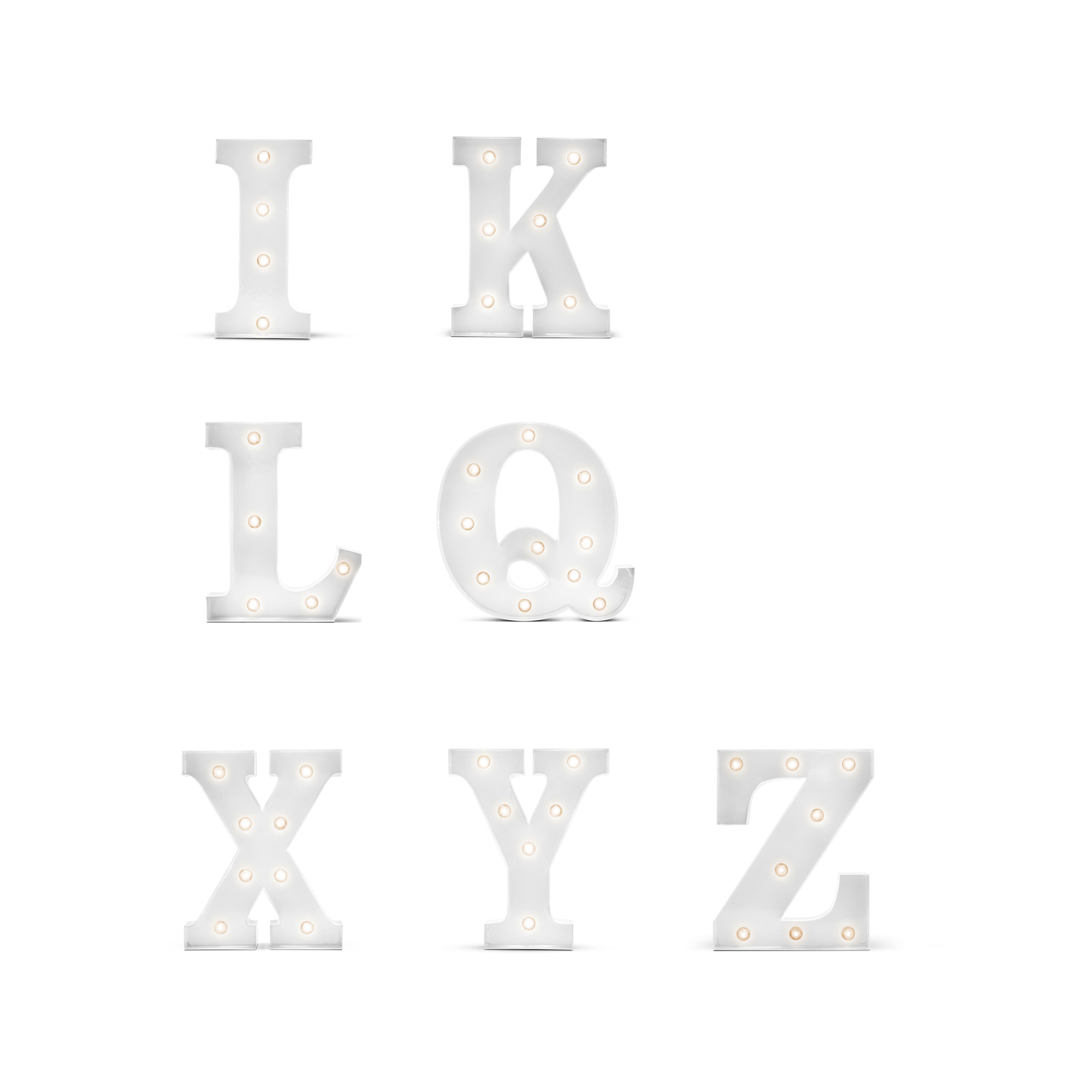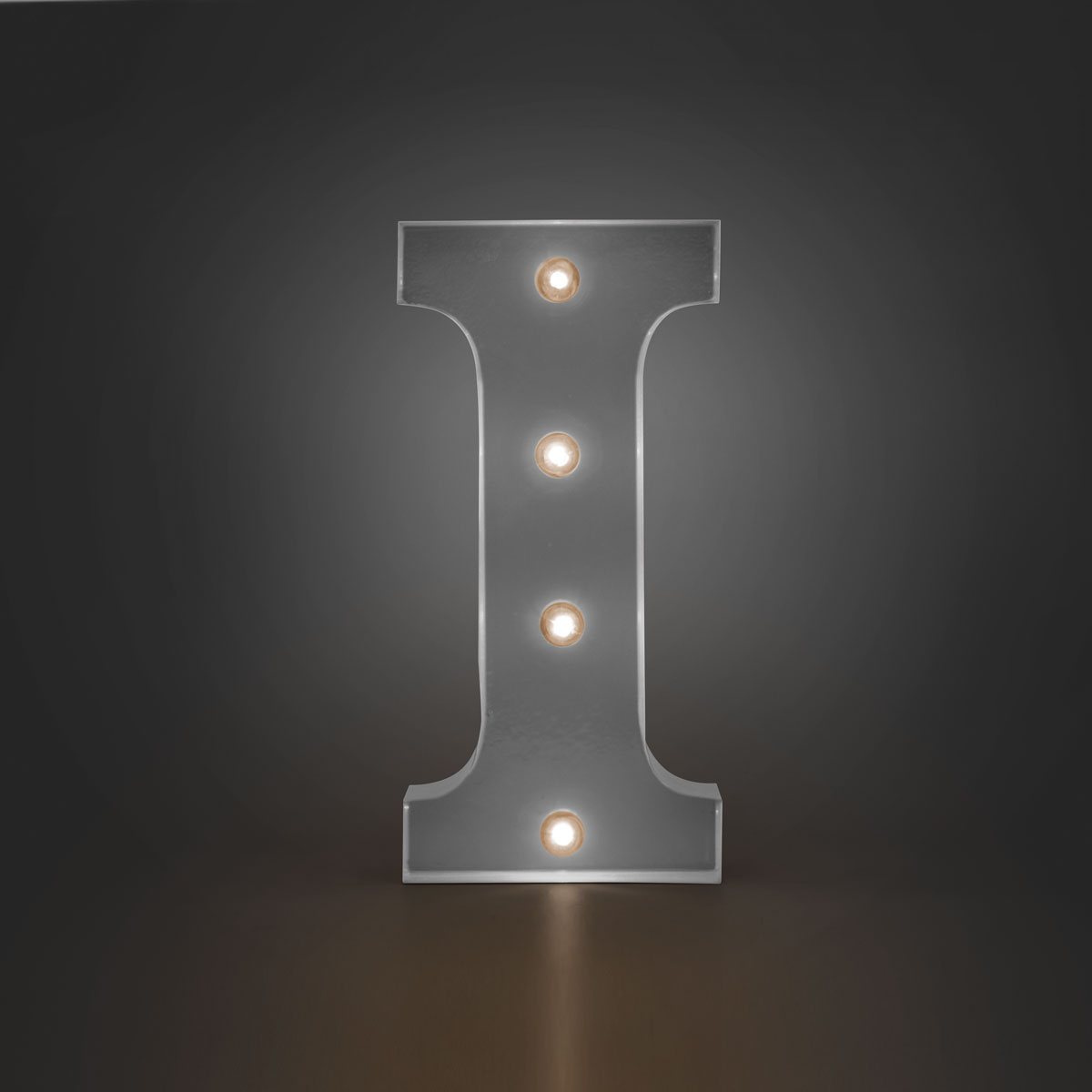 25 x 25 x 4,7 cm. Metal. Letra luminosa decorativa. Se puede apoyar o colgar. Funciona con 2 pilas AA (no incluidas). Incluye soporte para colgar. Presentación en caja de regalo Kraft.