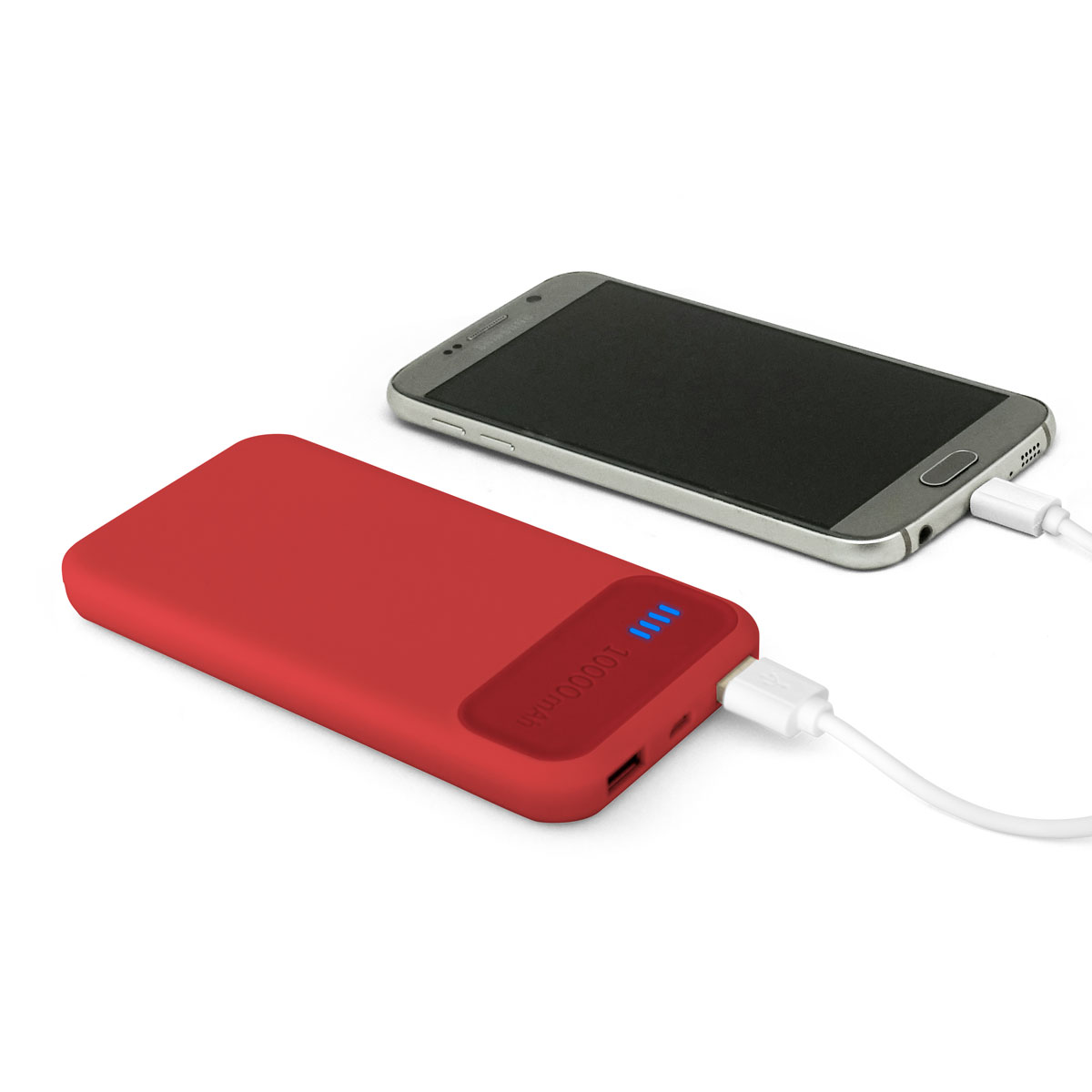 7,8 x 14,5 x 1,4 cm. ABS + Silicona. Capacidad 10000 mAh. 2 salidas de carga, de 1A y 2.1A. Cargador externo de 10000 mAh con doble salida de carga e indicador del estado de carga disponible. Compatible con celulares, tabletas y otros dispositivos. Presentación en caja de regalo.