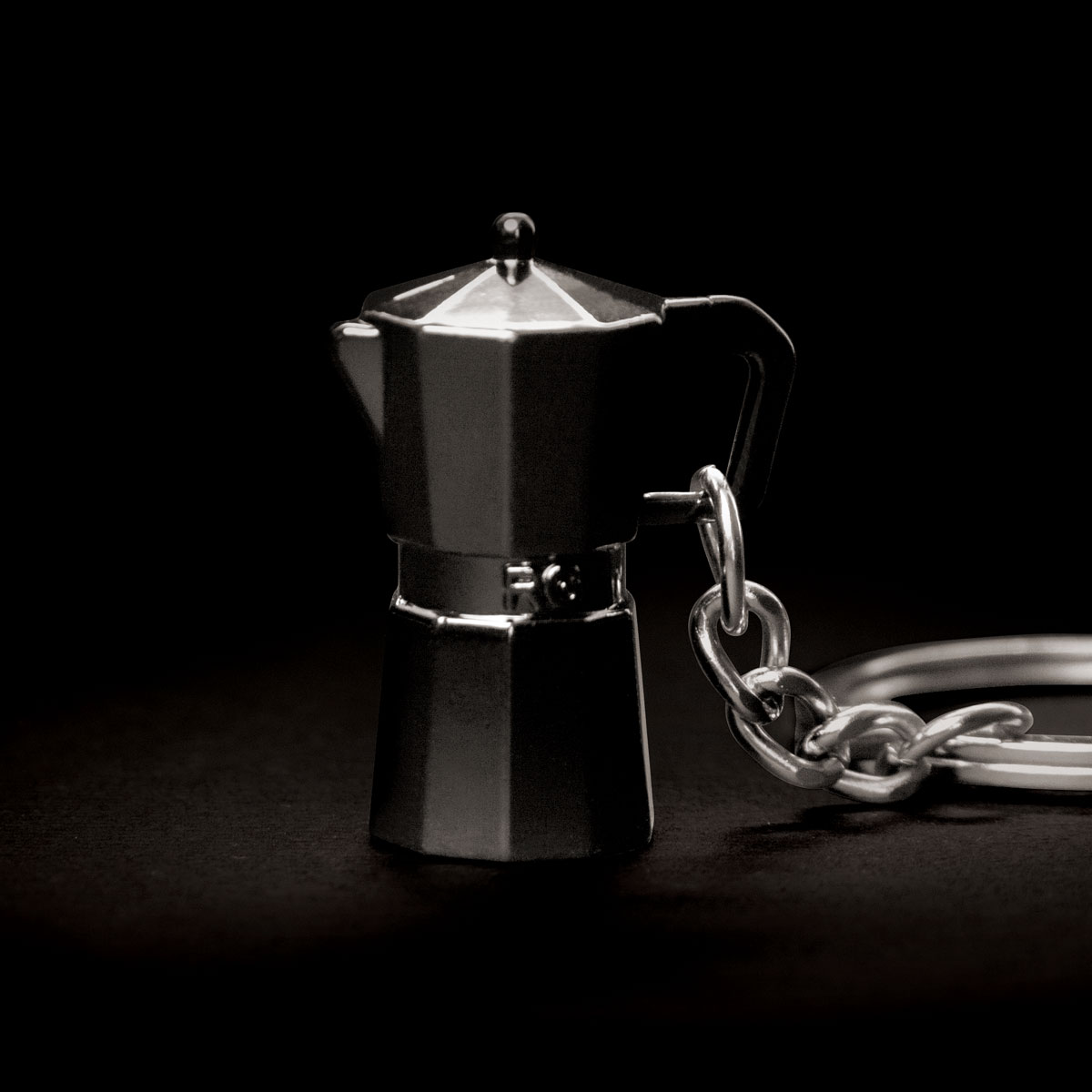 Llavero metálico con forma de la ya clásica cafetera Volturno.