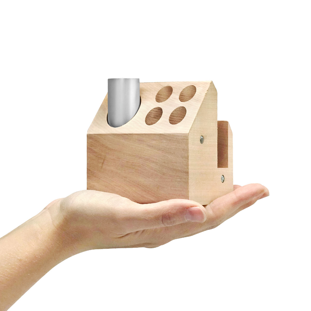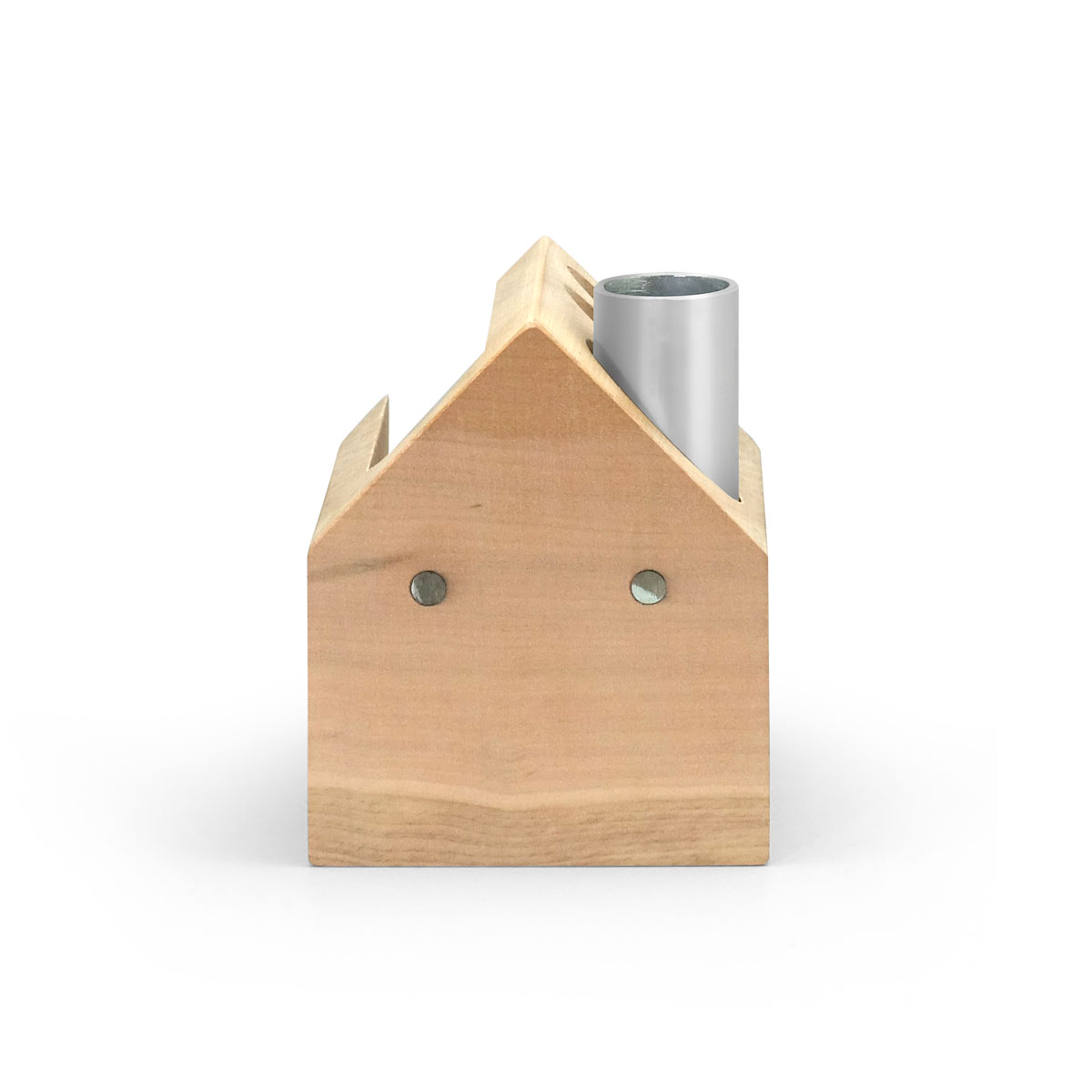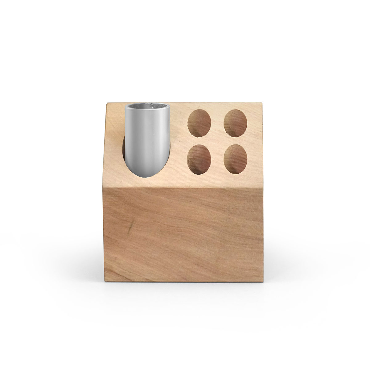 Madera Lenga Maciza, Aluminio y Acrílico. 9 x 9,5 x 8 cm. Imanes para combinarlas entre si.
