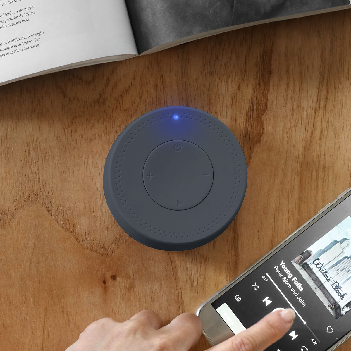 Ø 8,5 x 4,6 cm. Plástico terminación soft touch. Parlante bluetooth. Práctico diseño pocket con conexión Bluetooth y entrada de tarjeta TF. Presentación en caja de regalo.
