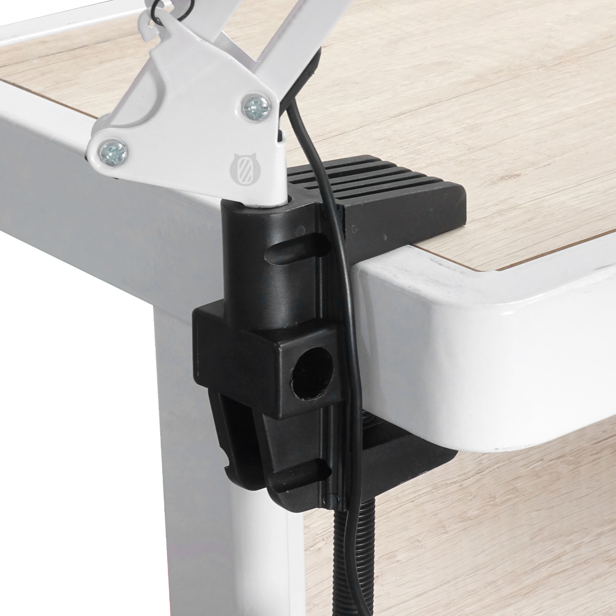 Posee dimmer para regular la intensidad y tres posibles cambios de temperatura color. Su brazo es flexible y puede usarse de manera autoportante con su base, o bien con la morsa agarrada a tu escritorio o mesa de trabajo.