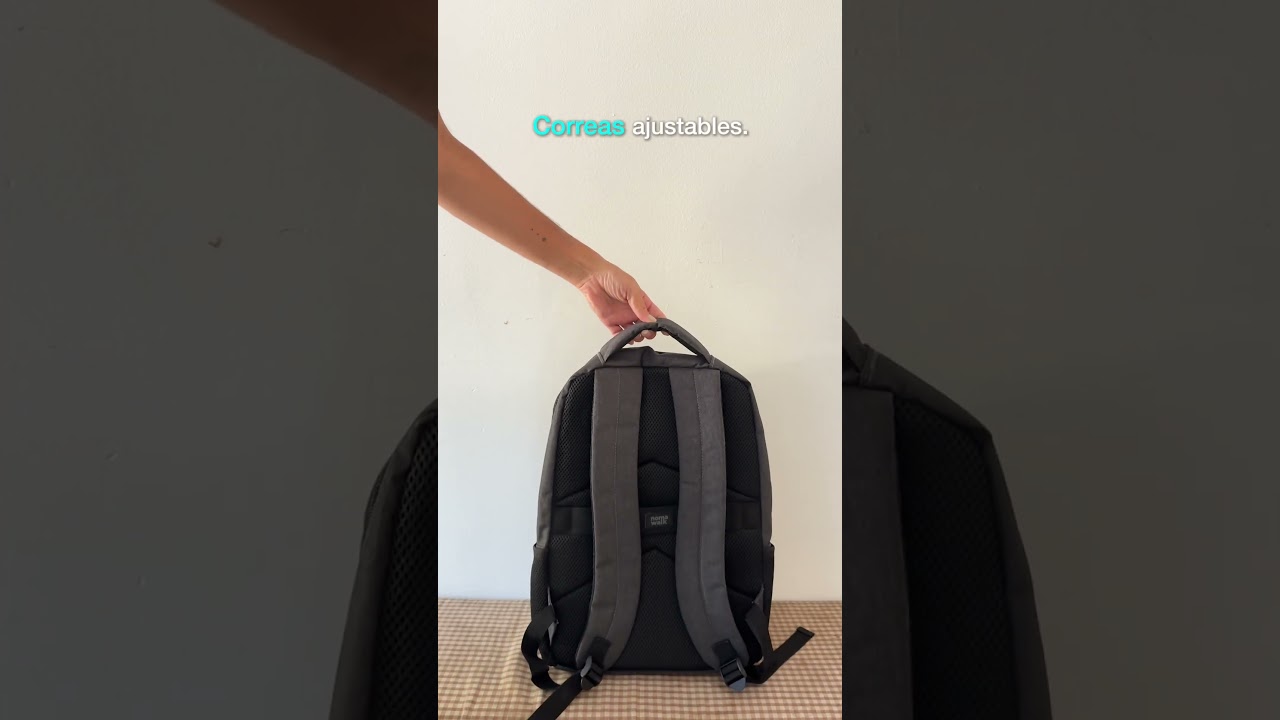 Mochila portanotebook de hasta 16 pulgadas. Cuenta con dos compartimentos, el compartimento principal con bolsillo acolchado para la notebook y el compartimento frontal con bolsillo pequeño. Frente con bolsillo horizontal con cierre y dos bolsillos laterales de malla porta botellas y accesorios. Asa superior, correas y respaldo acolchados. Correas ajustables. Tira para sujetar la mochila en la manija extensible de un equipaje de mano. Tiradores de cierres metálicos color negro.