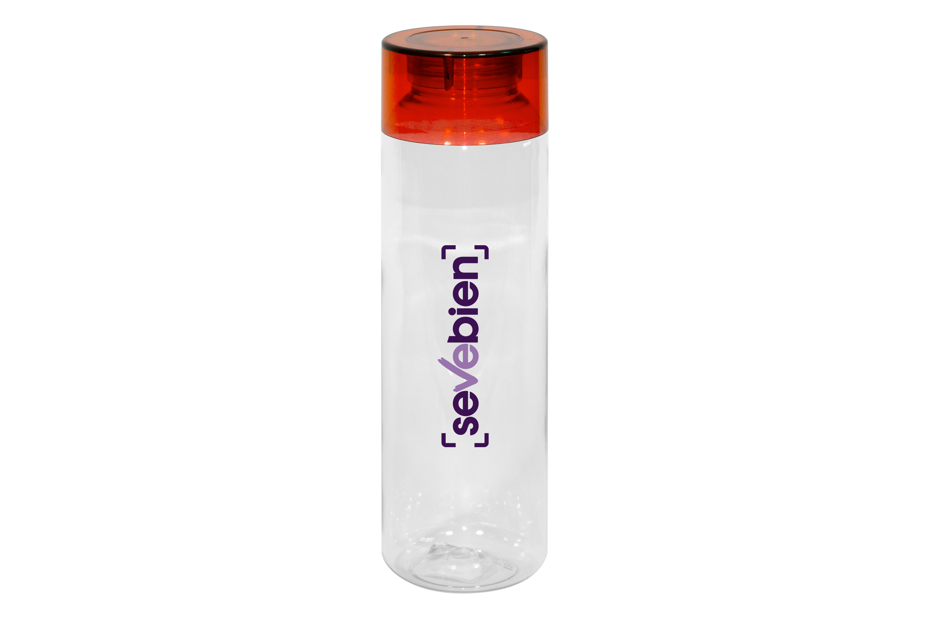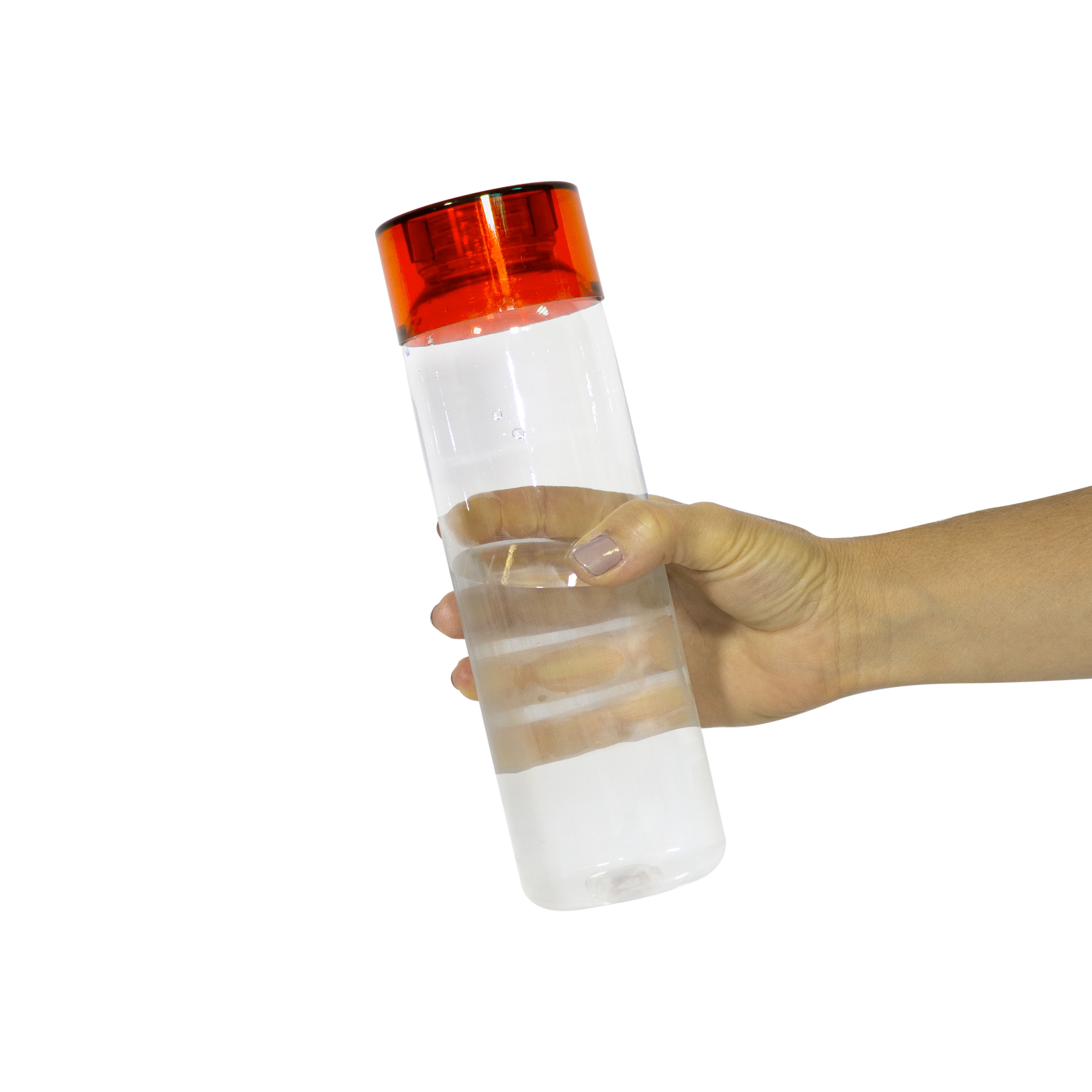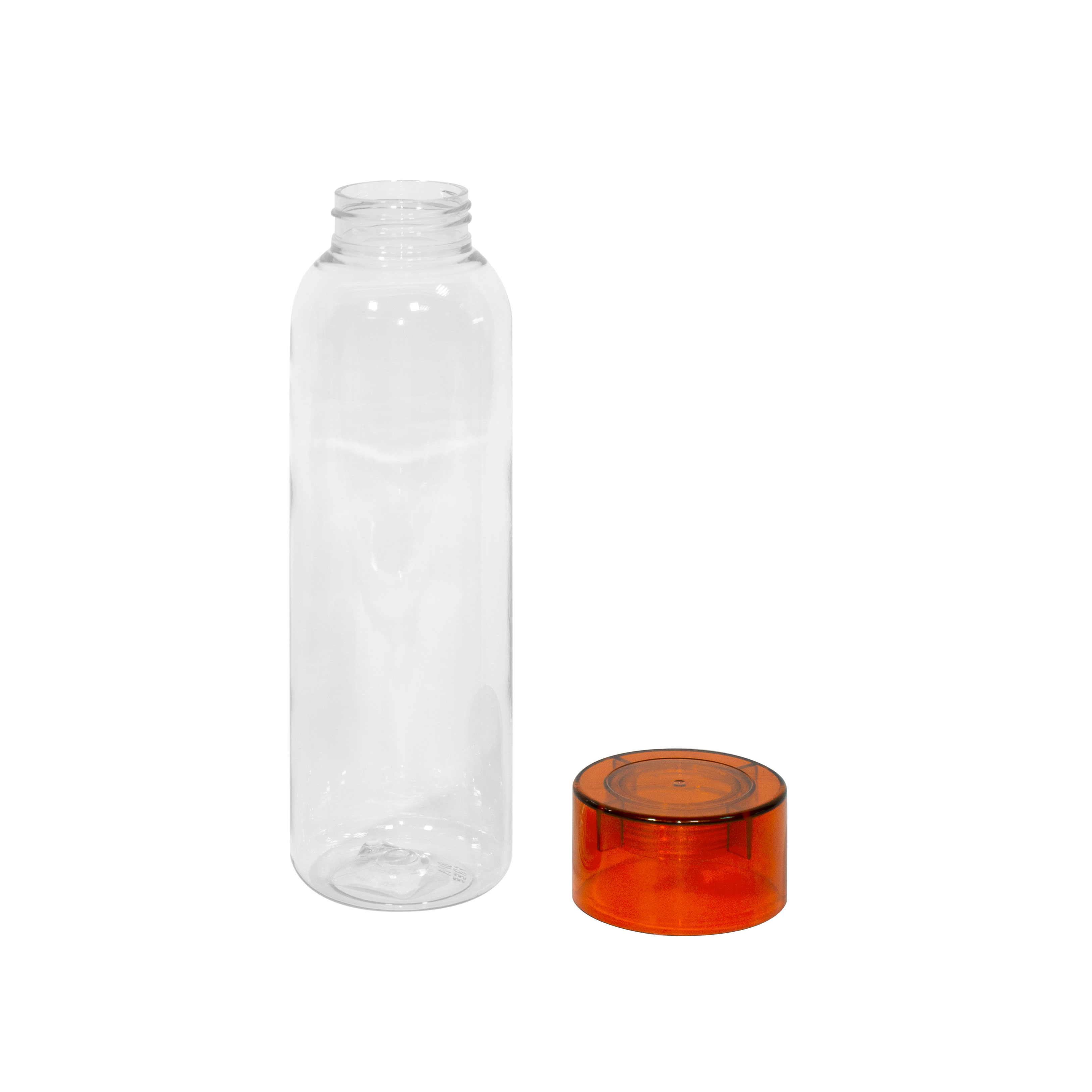 Ø 6 x 20 cm. Capacidad 550 ml. Peso de la botella: 61 gramos - Peso de la tapa: 26 gramos. Plastico PET.. Cuerpo transparente. Tapa a rosca.