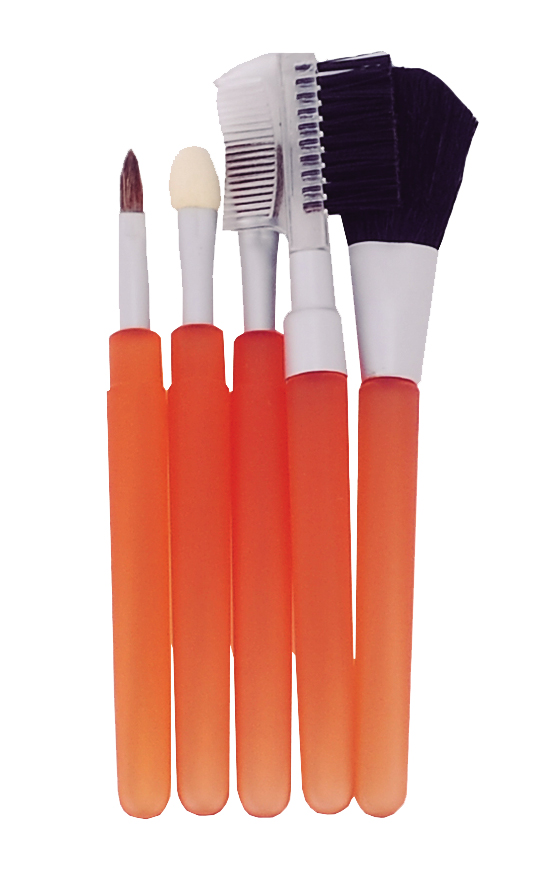 6,5 x 14 x 0,2 cm Plástico traslúcido. Set de 5 piezas: 1 brocha, 2 pinceles, 1 pincel difuminador y un peine para cejas. Estuche plástico transparente con cierre broche y cadena colgante.