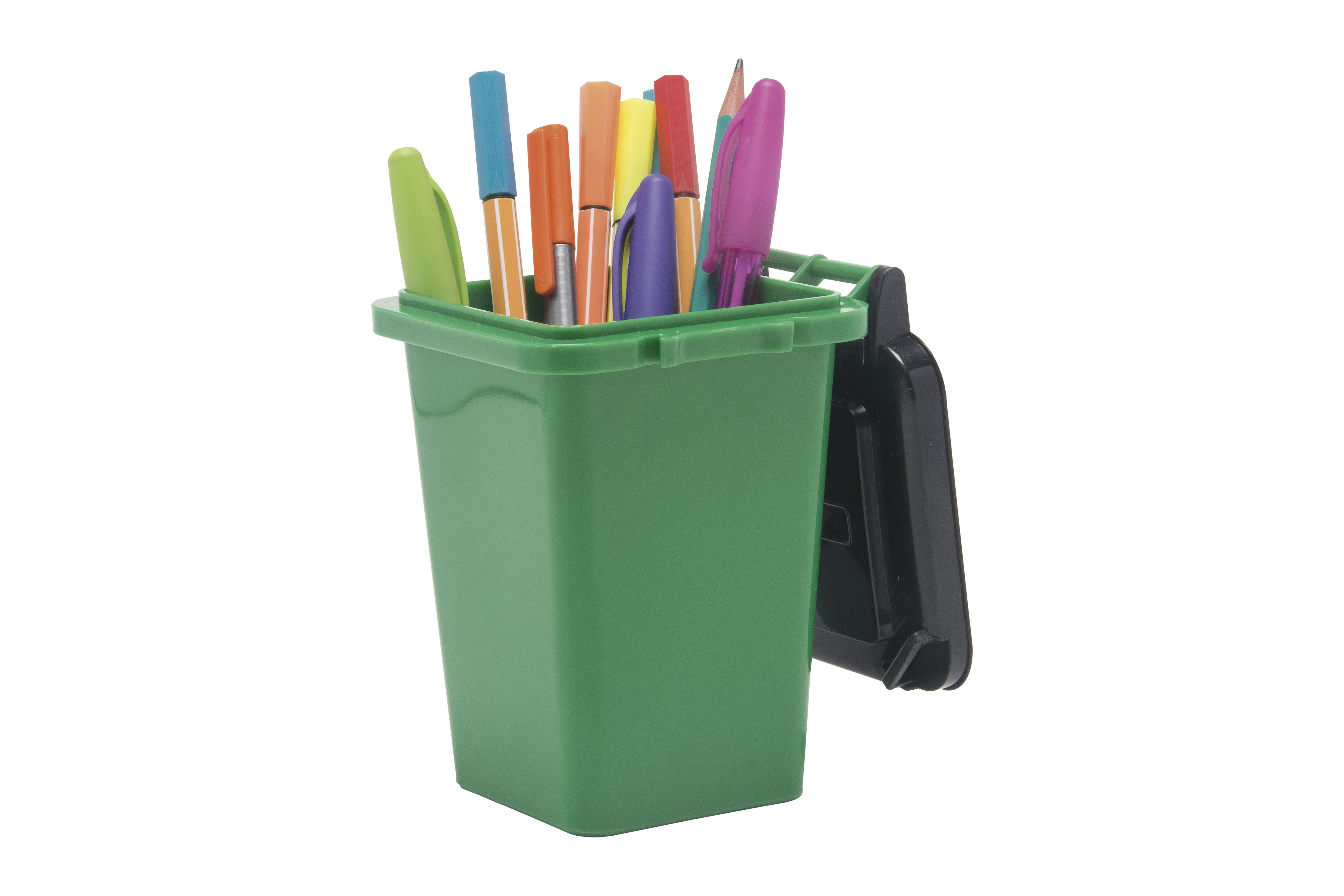 13 x 10 cm. Plástico. Portalapiz en forma de contenedor de basura.