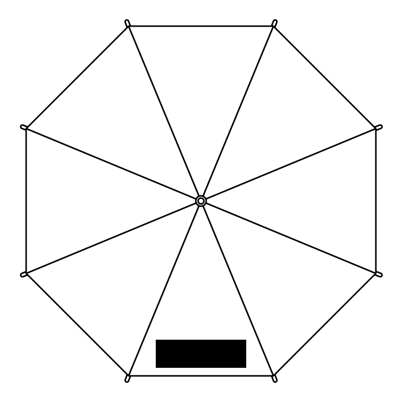 Ø 105 cm. Caña de 82 cm. Poliéster. Varillas de fibra. Mango de goma EVA. 8 gajos. Longitud de caña: 81,5 cm.