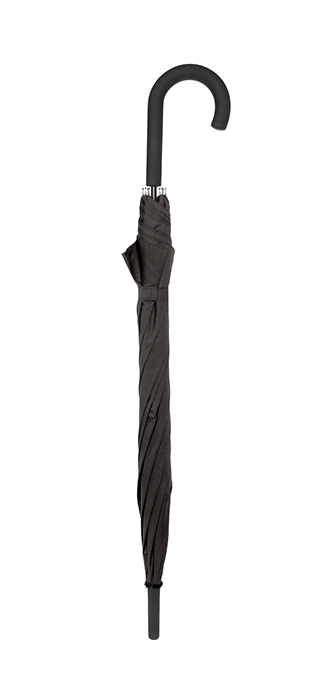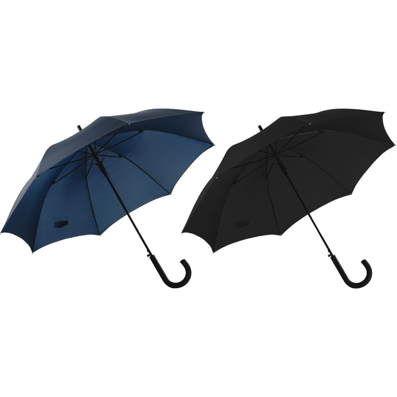 Ø 103 cm.Altura: 86 cm Polyester. Resistente al viento, con caña, varillas de metal y mango curvo de Goma Eva compacta. 8 gajos y apertura automática.