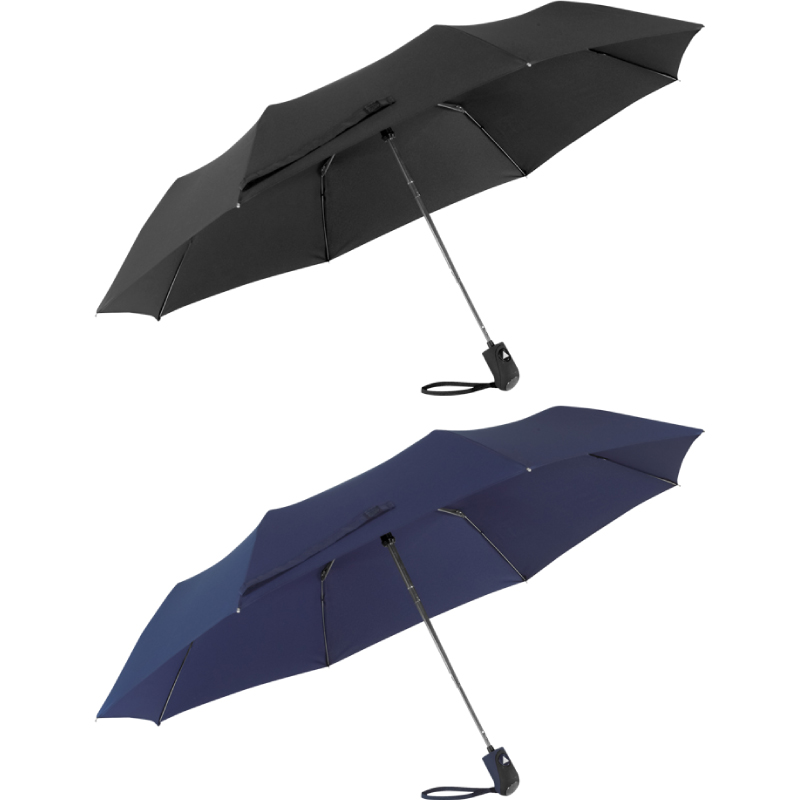 Abierto Ø 96 cm.Cerrado 30 cm. Poliéster. Caña de metal (3 partes,sistema telescópico), varillas y puntas de metal, mango de goma y funda. APERTURA AUTOMÁTICA Y CIERRE MANUAL